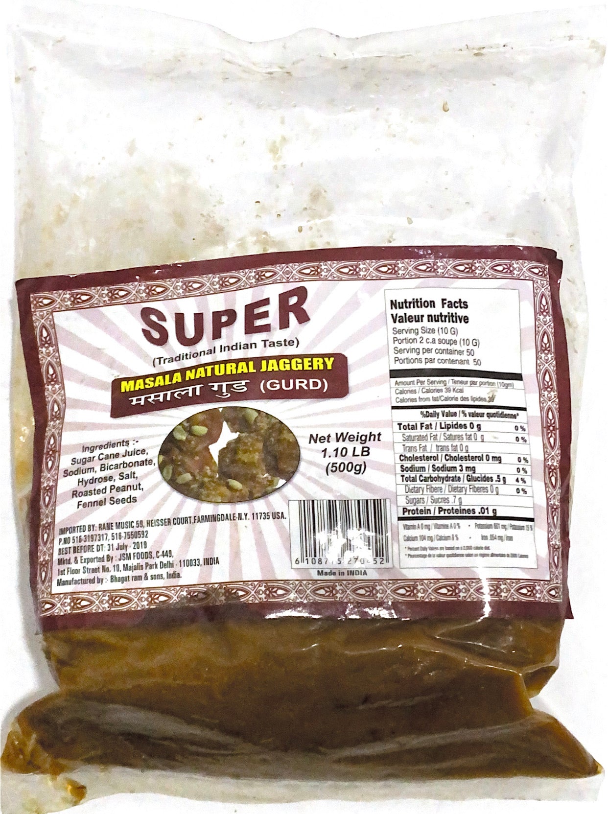 Jaggery or Gud or Gur is often used as a replacement for sugar. Used as an ingredient in many sweet and savory dishes across India.Â