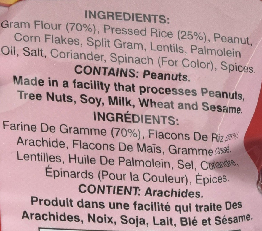 Spicy and crunchy snack mix with cornflakes, gram flour noodles, fried lentils, peanuts and more.