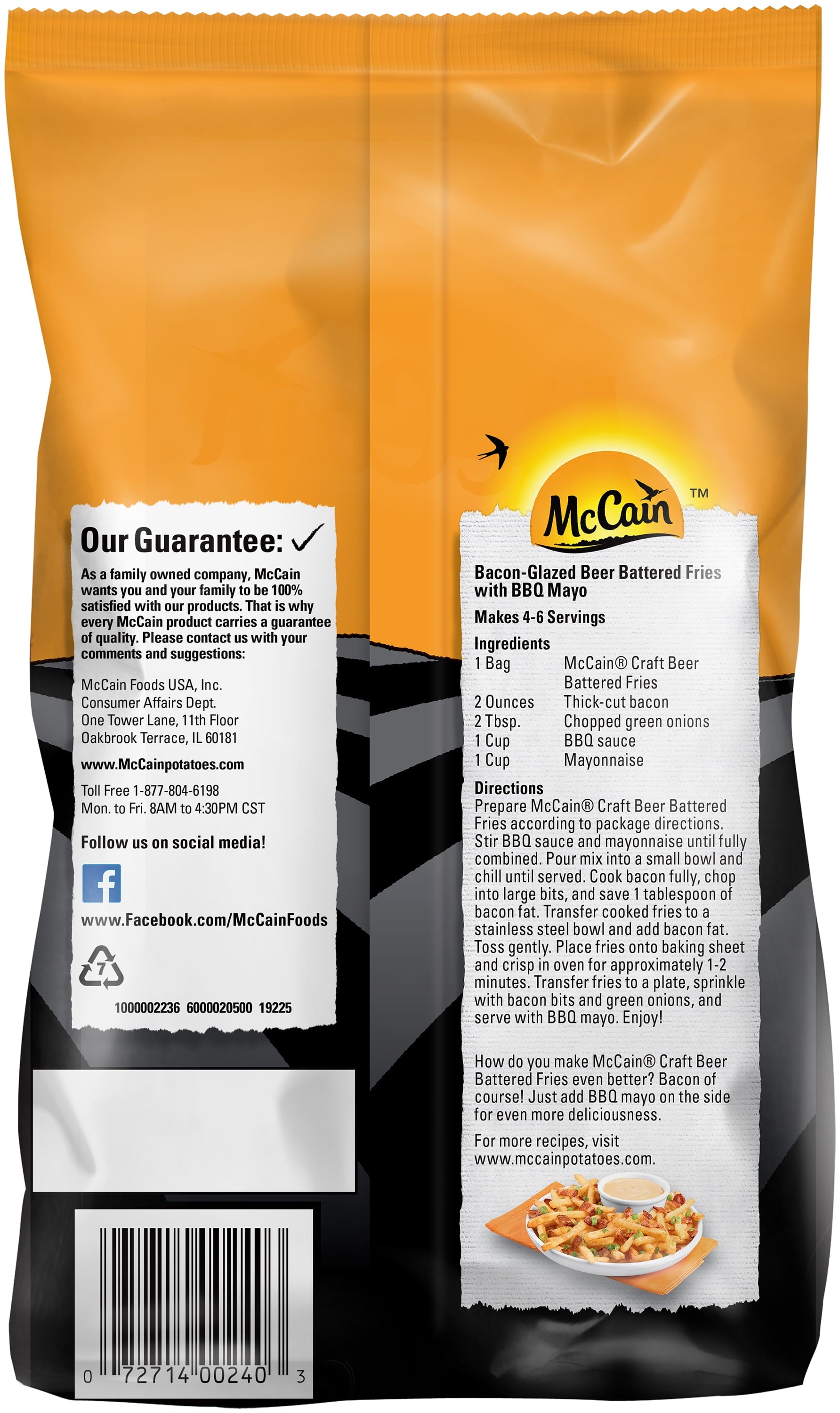 One 22 ounce frozen bag of McCain Craft Beer Battered French fry Potatoes