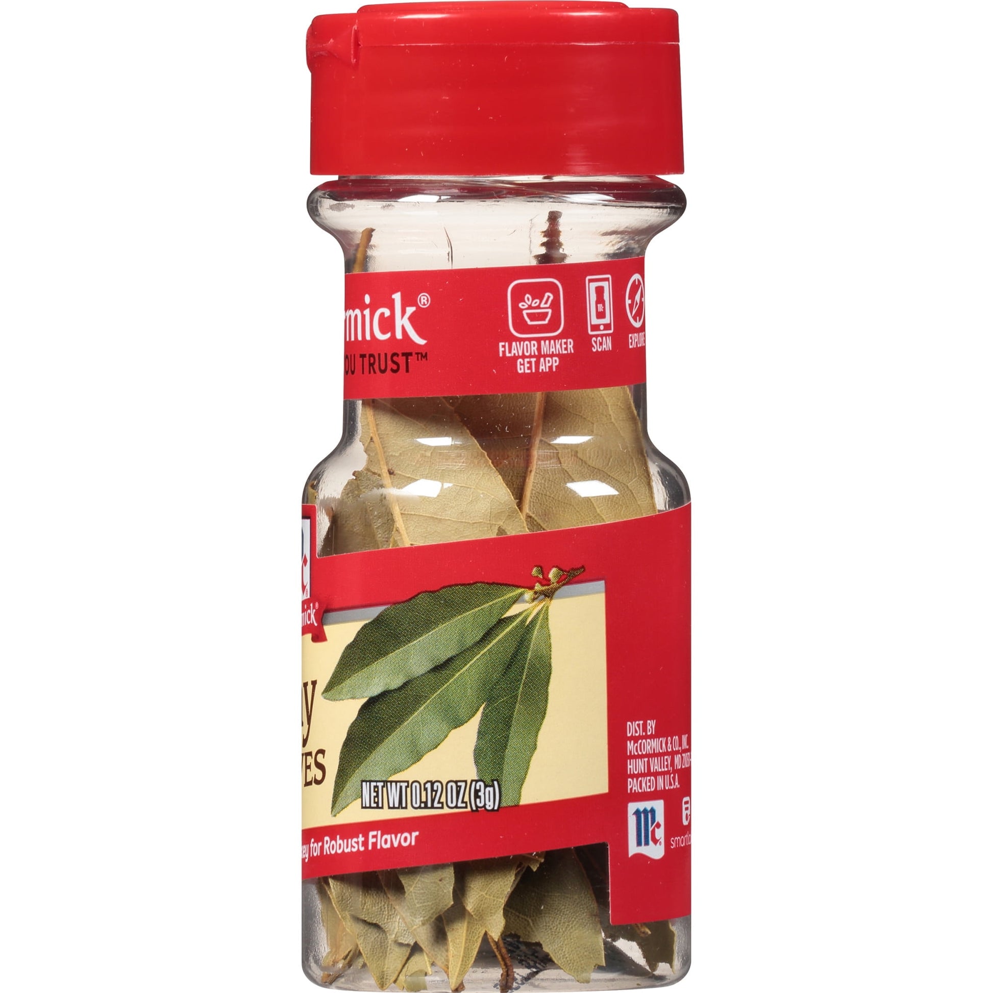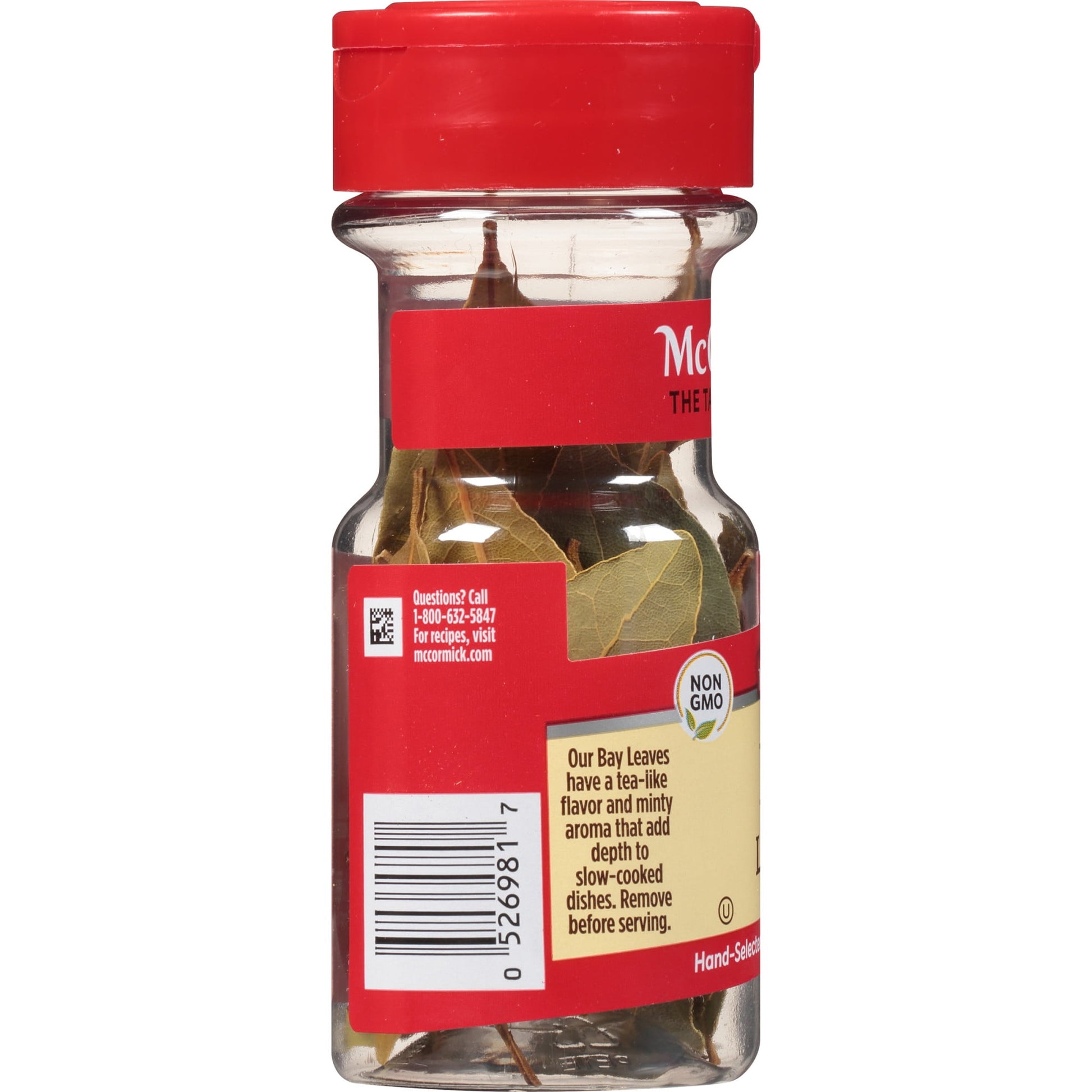 McCormick hand-selects its bay leaves from Turkish-grown bay trees, a member of the laurel family. Indispensable to most cuisines, especially French, Mediterranean and Indian, they add robust flavor all kinds of meat and vegetable dishes, soups and sauces. Our Bay Leaves have a tea-like flavor and minty aroma that add depth to slow-cooked dishes. They release their flavor slowly, so add them at the beginning of the cooking time. Just be sure to remove them before serving. Prized for their savory flavor, bay leaves are essential in recipes for roast chicken or turkey, pot roast, soups and stews. They enrich bean dishes, tomato sauces, pickling liquids and marinades. Add bay leaves to the water for boiling potatoes when making mashed potatoes. This McCormick® Bay Leaves is in a Plastic bottle that is 0.12 ounces. Store this shelf-stable item at an ambient temperature.