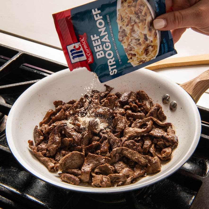 Make a creamy, savory dish your family will love using McCormick Beef Stroganoff Sauce Seasoning Mix. This classic dish of sautéed beef in a creamy garlic-onion sauce is delicious over hot noodles. Made with McCormick spices, no artificial flavors or MSG added*. Authentic Beef Stroganoff is tasty and easy! McCormick Beef Stroganoff Sauce Mix delivers homemade taste that's delicious and delightfully simple to make. Turn ordinary noodle dishes into an extraordinary event. Sprinkle our signature blend of seasonings, including garlic and onion, on beef for a hearty meal that’s ready to serve in just 20 minutes. *Except for naturally occurring glutamates This McCormick® Beef Stroganoff Sauce Seasoning Mix is in a Paper packet that is 1.5 ounces. Store this shelf-stable item at an ambient temperature.