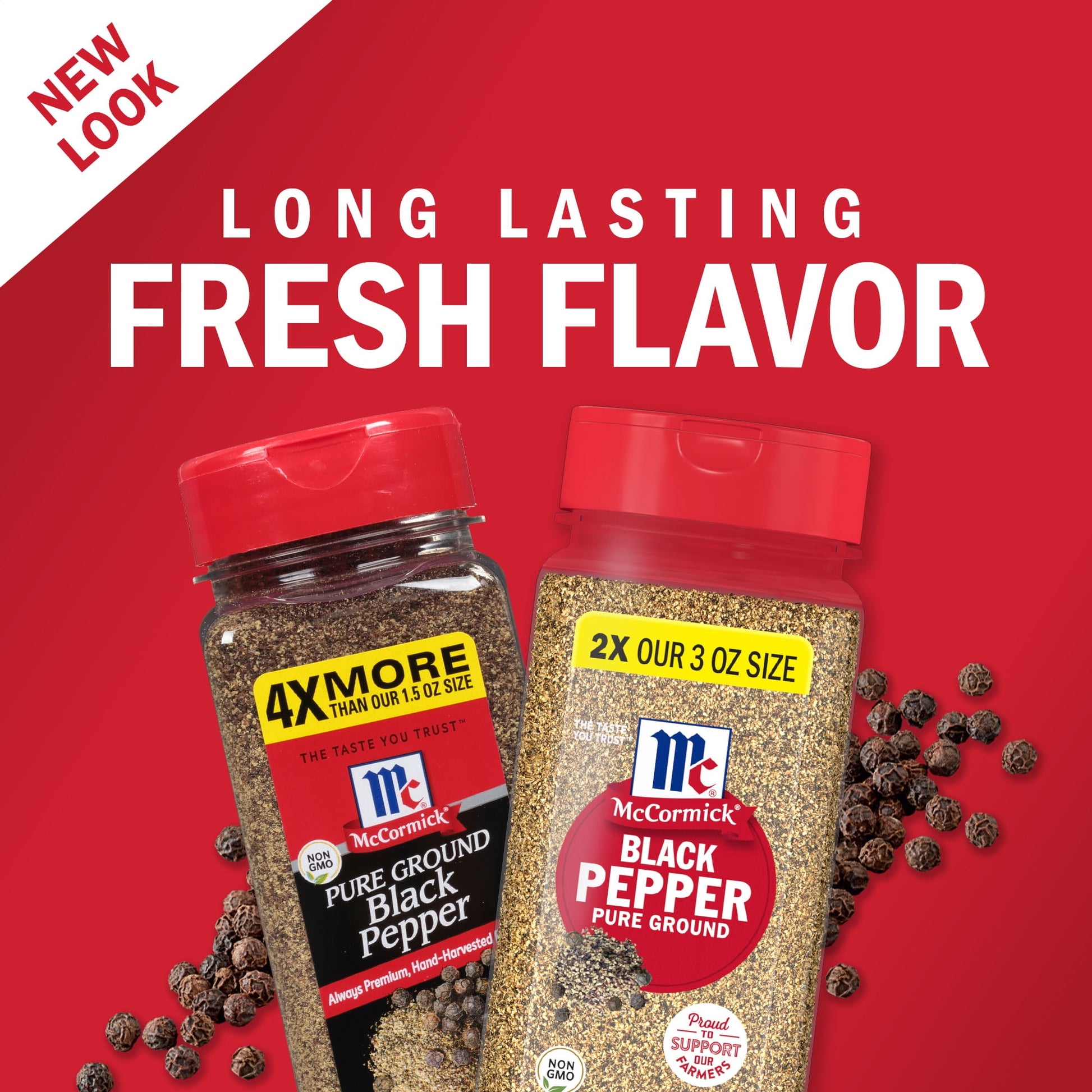 McCormick Pure Ground Black Pepper delivers a sharp aroma & earthy heat