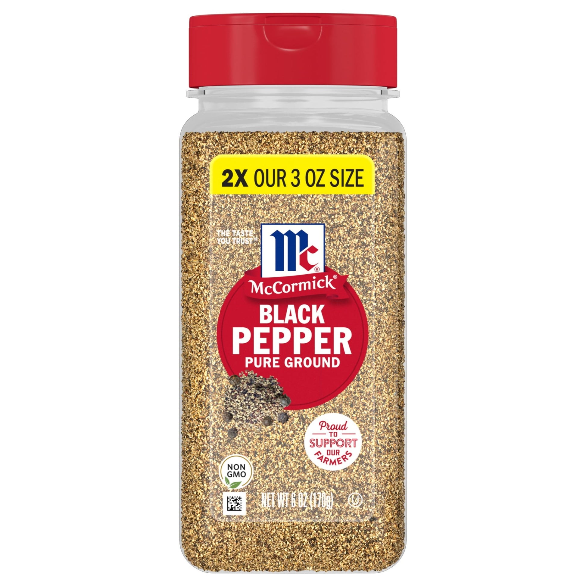 McCormick® Pure Ground Black Pepper always starts with premium, hand-harvested peppercorns. This pantry staple delivers a sharp aroma and kick of earthy heat – perfect for meats, soups and stews. While salt & pepper are the most basic seasonings in the kitchen, for cooks around the word, Ground Black Pepper is the more beloved spice. Its subtle bite plays well with many ingredients, enhancing, but rarely overpowering other flavors. Add to almost any dish – stir into slow-cooked recipes, sprinkle on eggs and vegetables, or rub on meat to season it before cooking. It adds a layer of heat to salad dressings, marinades and sauces. Black pepper mellows with cooking which is why a table-top pepper shaker is a must for perking up meals. This McCormick® Pure Ground Black Pepper is in a Plastic bottle that is 6 ounces. Store this shelf-stable item at an ambient temperature.