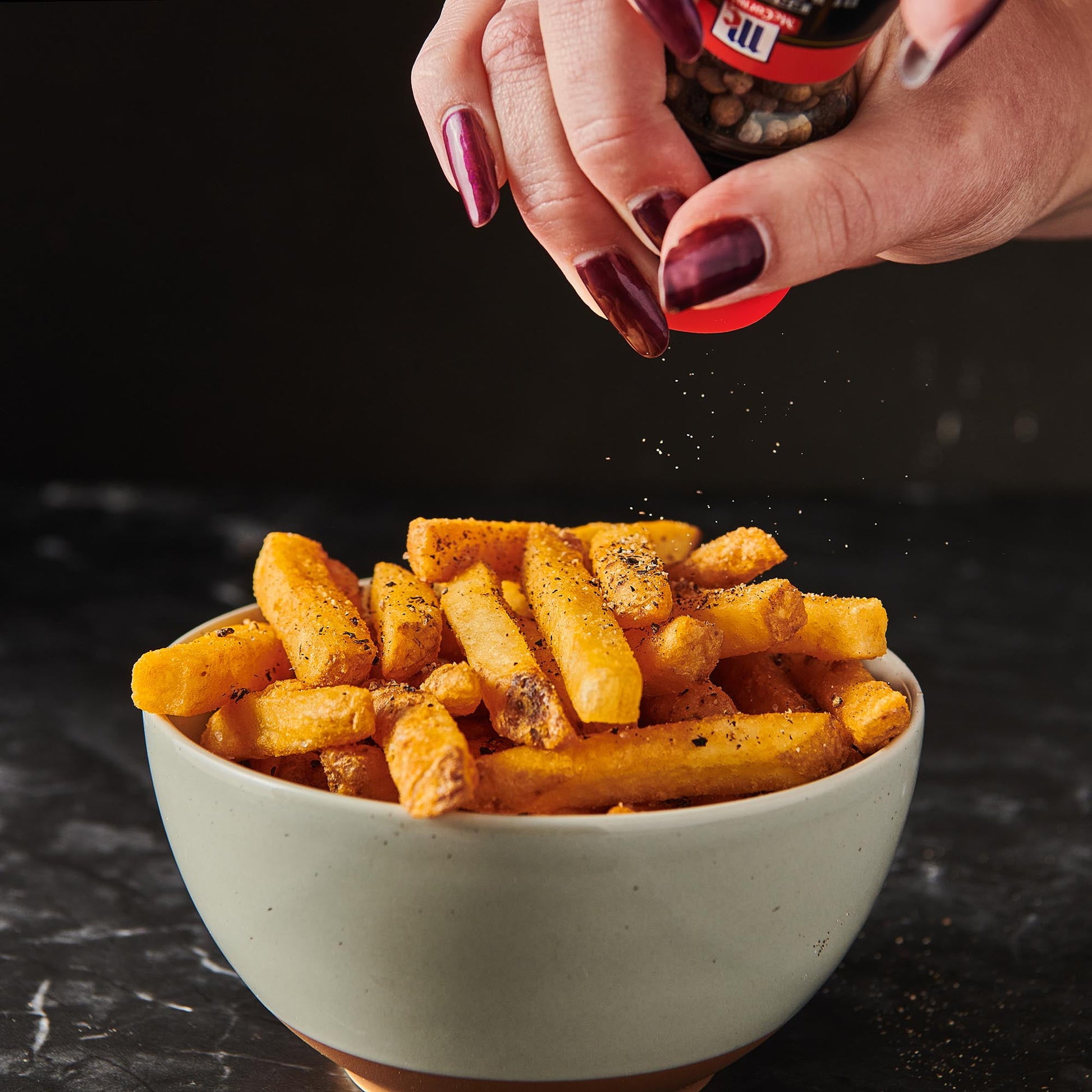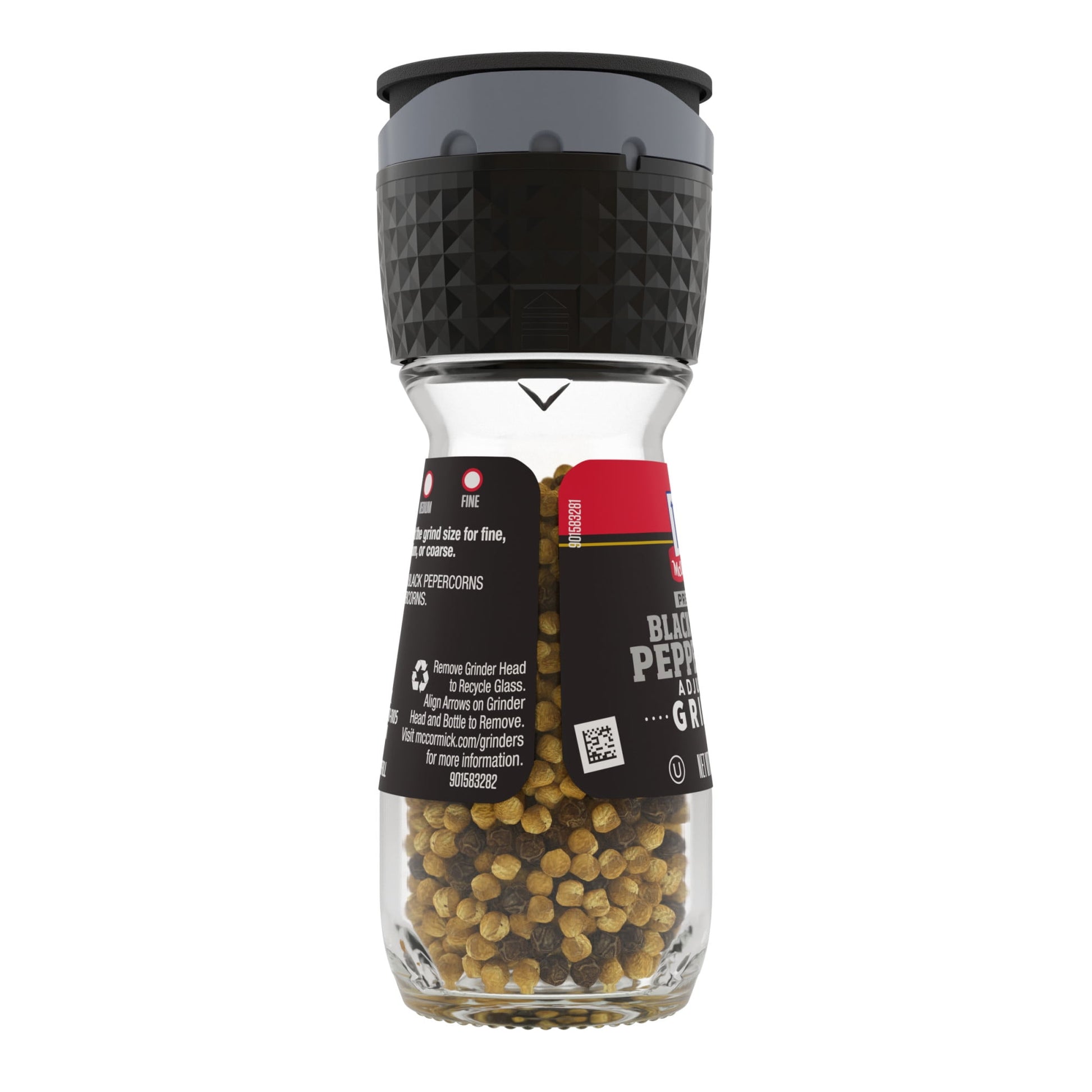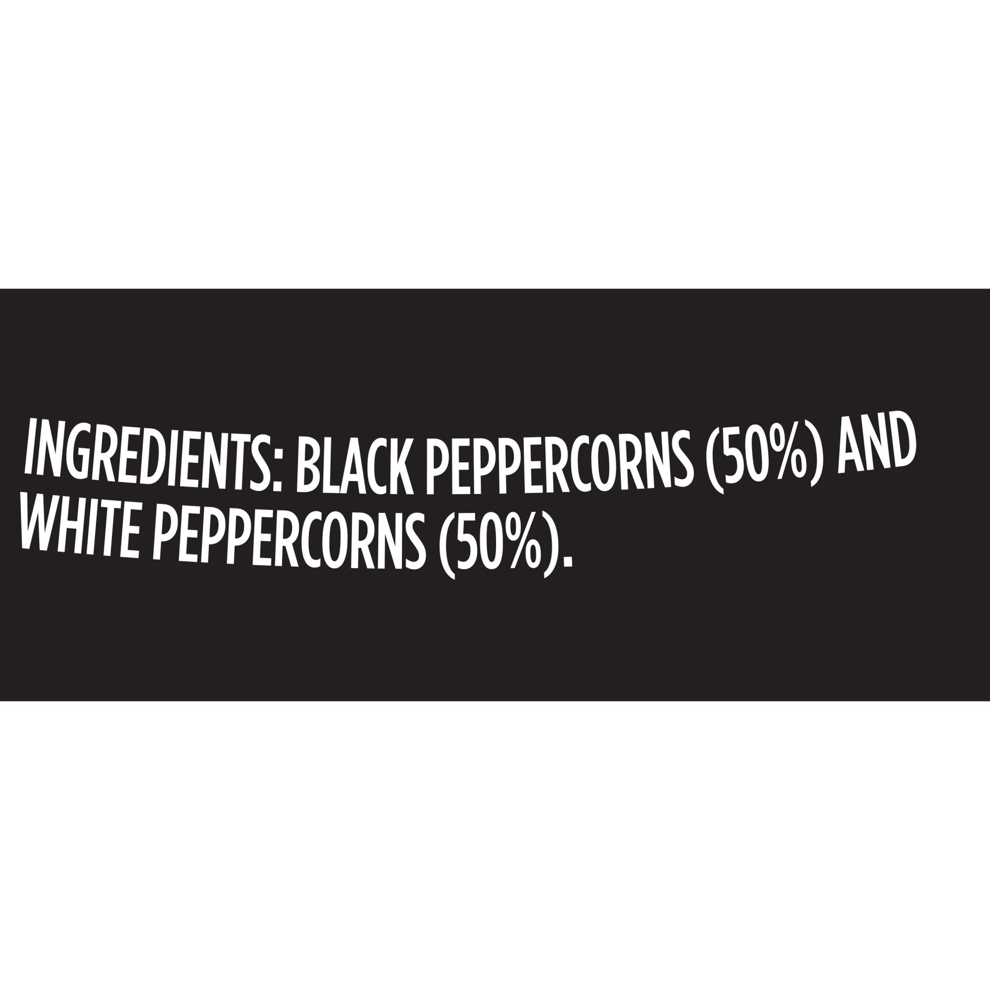 A must-have kitchen staple, this easy-twist pepper grinder lets you enjoy not one, but two peppery flavors – white and black pepper! The woody spice of black pepper is expertly balanced by the earthy, milder heat of white pepper to complement everything from salads and pizza to grilled or roasted meats. McCormick® Premium Black & White Peppercorn Grinder offers whole peppercorns with an adjustable grinder to deliver perfectly cracked pepper to suit your taste or recipe. Choose coarse ground pepper to crust steaks or burgers. Adjust to finely ground pepper for sprinkling over pasta, soup, salads or vegetables. Keep this peppercorn medley along with a salt grinder in the kitchen, at the table or by the grill for freshly ground flavor anytime. This McCormick® Premium Black & White Peppercorn Grinder is in a Glass bottle that is 1.26 ounces. Store this shelf-stable item at an ambient temperature.