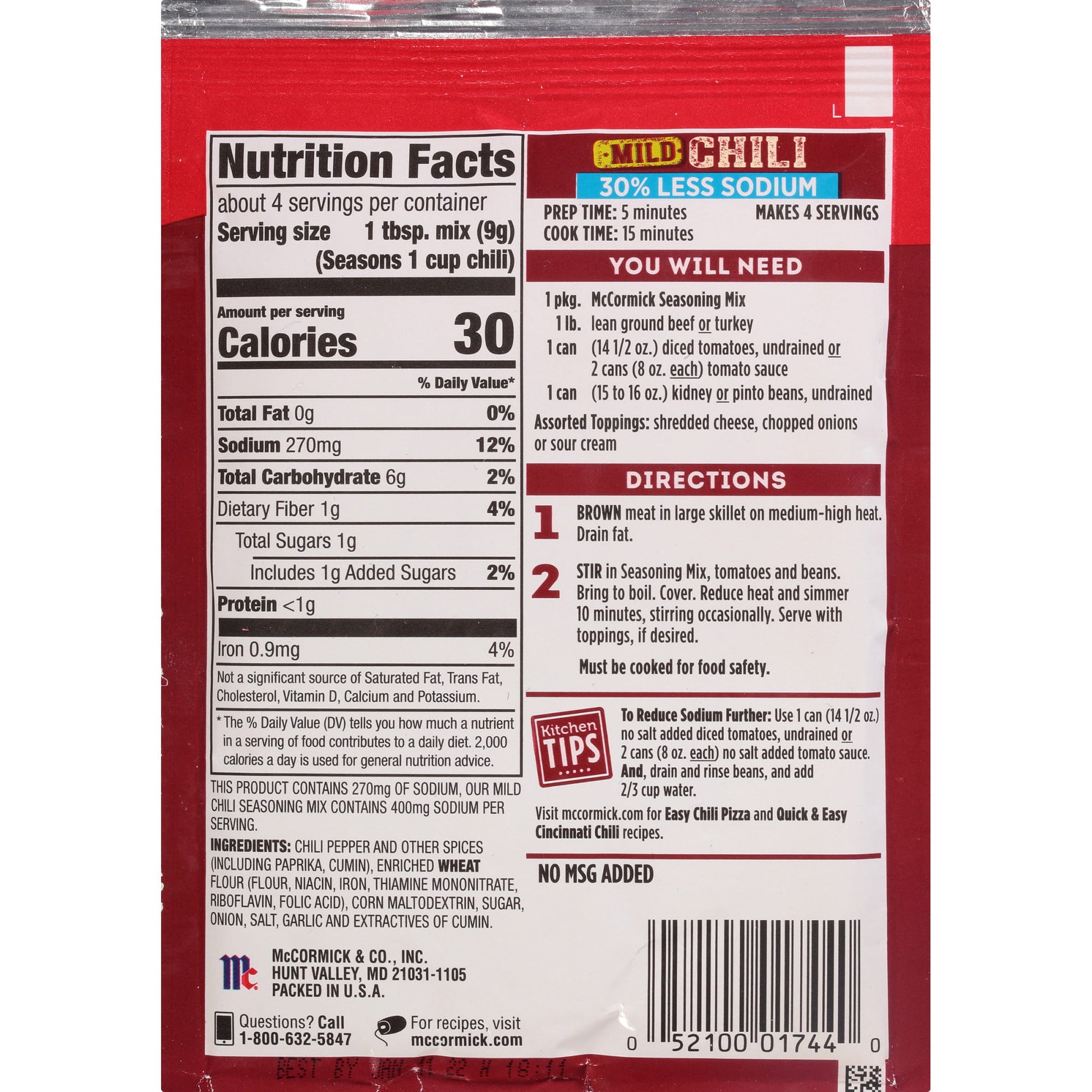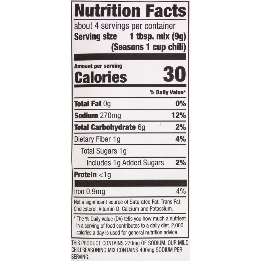 30% less sodium than McCormick Mild Chili Seasoning Mix