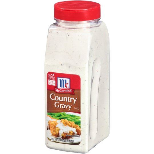 McCormick Country Gravy Mix in a larger, 18 oz size so you can enjoy delicious, creamy gravy at family gathering after gathering.This lightly peppered treat is one you can feel good about, made with McCormick spices with no MSG added* and no artificial flavors. Plus, it tastes like southern hospitality, and no wonder! This country gravy mix is the key ingredient to your favorite comfort foods: think biscuits and gravy, chicken fried steak and home fries. It’s so easy to get the homestyle southern cooking style you crave - just add water, and serve with your favorite meals. The even bigger package is perfect for the whole family. *Except those naturally occurring glutamates. This McCormick® Country Gravy Mix is in a Plastic bottle that is 18 ounces. Store this shelf-stable item at an ambient temperature.