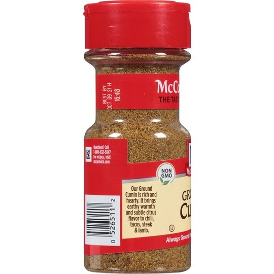 Rich and hearty McCormick Ground Cumin is always ground from whole cumin seeds. It brings earthy warmth and subtle citrus flavor to chili, tacos, steak, lamb and shish kebabs. A global favorite in Mexican, Latin American, Indian and Middle Eastern kitchens, cumin imparts a distinctive earthy aroma and taste. It is an essential spice in Mexican and Tex-Mex dishes like tacos, chili, salsa and tamales and is a main ingredient in chili powder. It’s a must for Middle Eastern hummus, couscous, stews and lamb dishes. In India, cooks add it to garam masala and curry spice blends. Cumin adds toasty warmth to lentil soup, bean dips and roasted vegetables and is delicious in marinades and spice rubs for meat and poultry. This McCormick® Ground Cumin is in a Plastic bottle that is 1.5 ounces. Store this shelf-stable item at an ambient temperature.