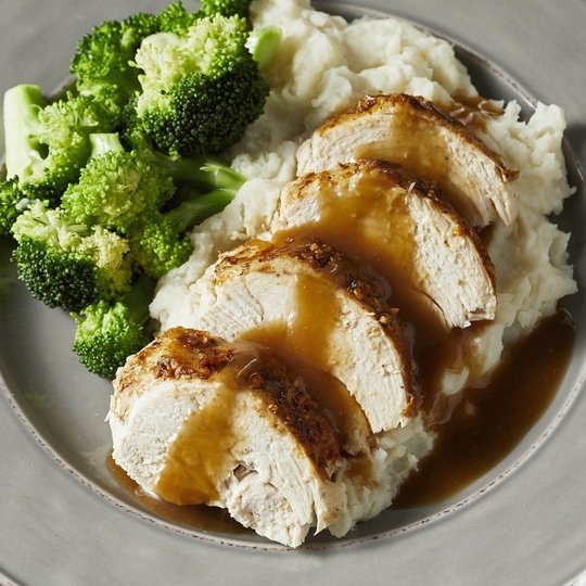Serve over chicken, hot meat sandwiches, mashed potatoes and stuffing
