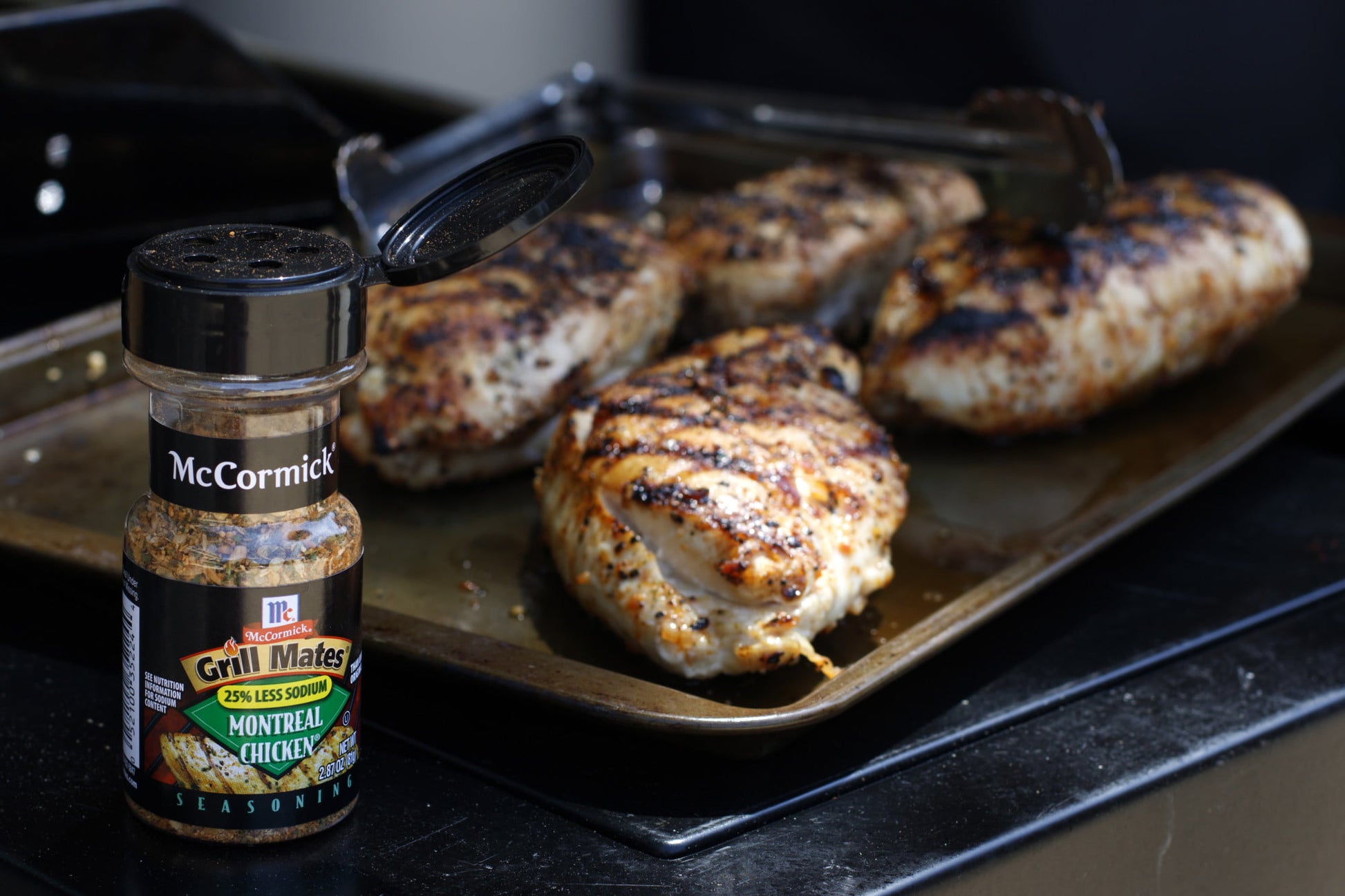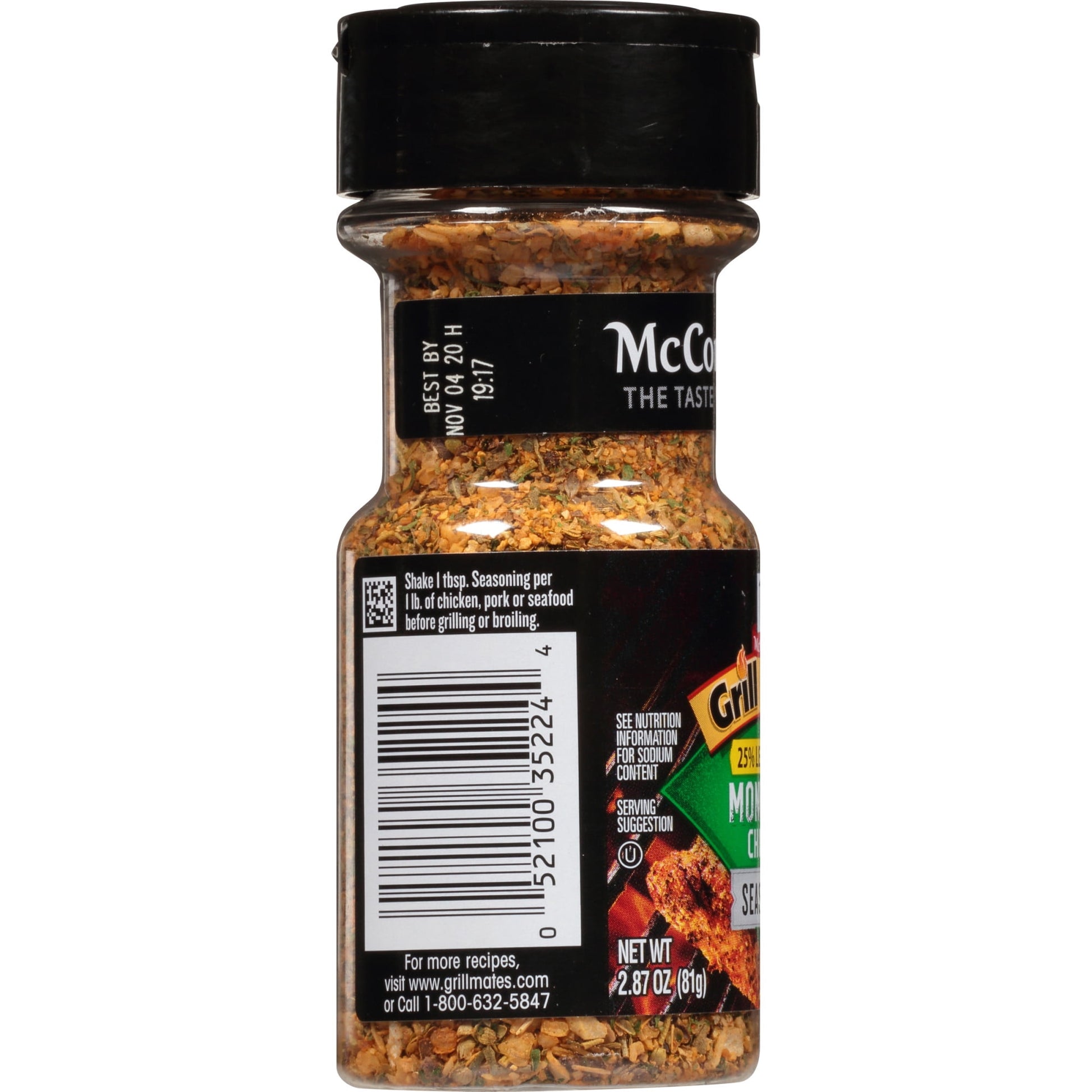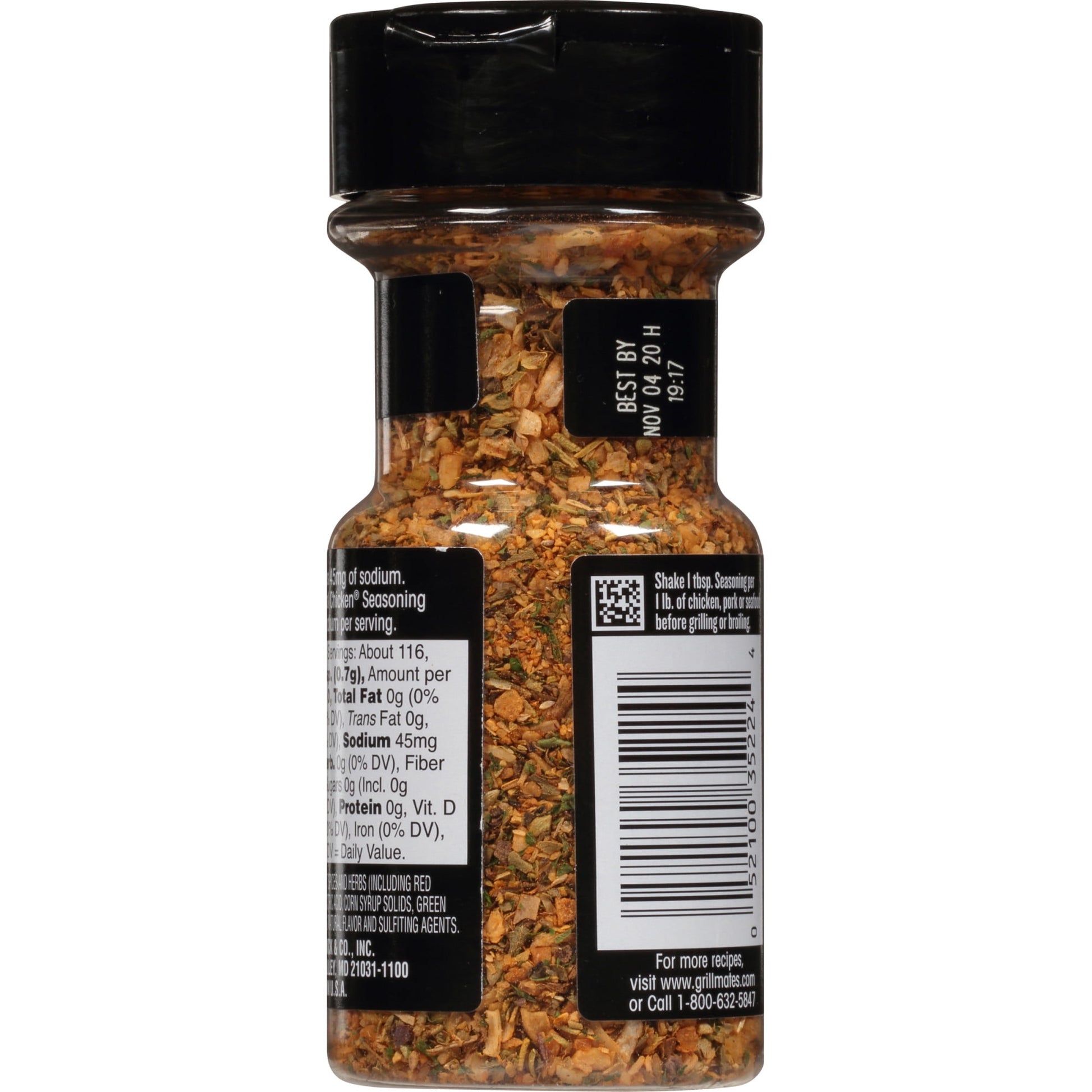 Make dinner extra special with a shake of McCormick Grill Mates 25% Less Sodium Montreal Chicken Seasoning Blend. Made with all natural herbs and spices, including garlic, onion, paprika, orange peel and red pepper, this seasoning provides a refreshing, citrusy flavor to chicken, pork and seafood -- with 25% less sodium. All it takes is one tablespoon of seasoning per pound of meat to turn a simple meal into a dazzling delight. This McCormick® Grill Mates® 25% Less Sodium Montreal Chicken Seasoning is in a Plastic bottle that is 2.87 ounces. Store this shelf-stable item at an ambient temperature.