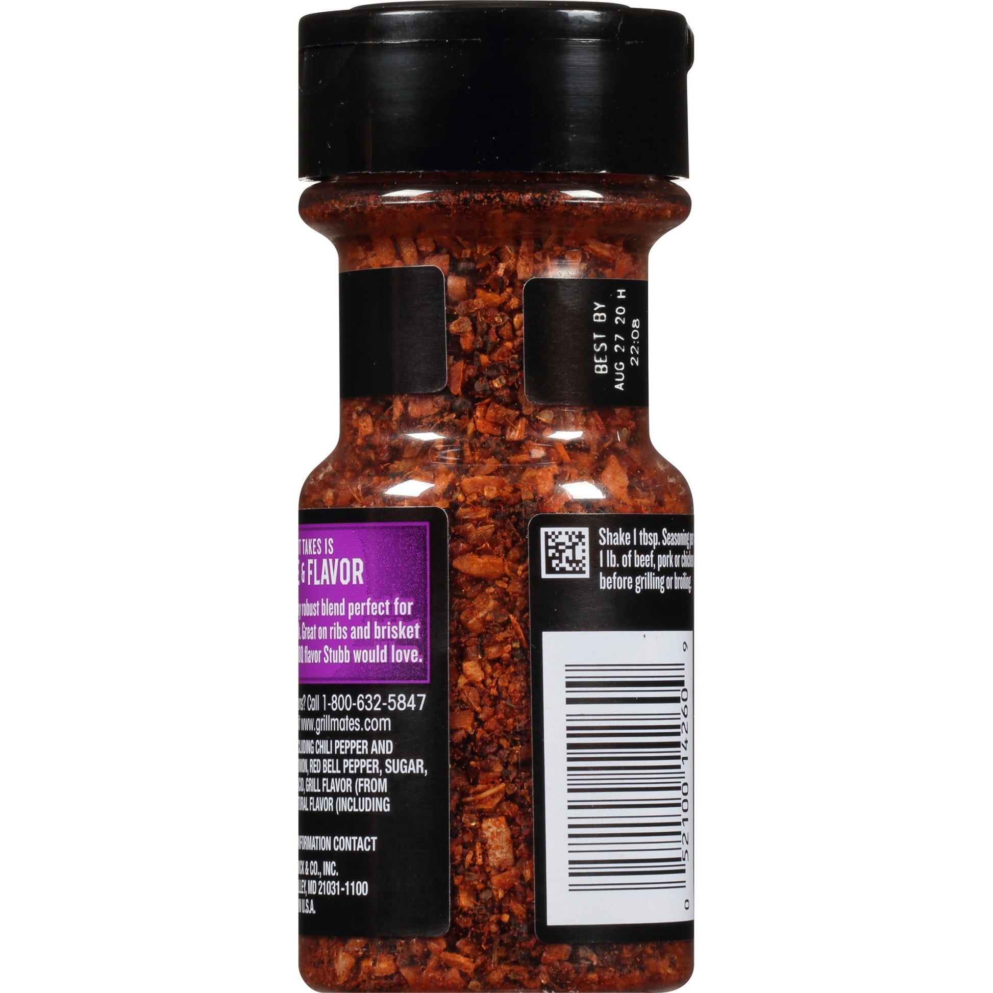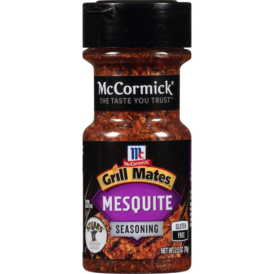 Make dinner extra special with a shake of McCormick Grill Mates Mesquite Seasoning Blend. Made with all natural herbs and spices, including garlic, onion, sugar, red bell pepper and paprika, this robust seasoning is the go-to source for flavorful chicken, pork and ribs. All it takes is one tablespoon of seasoning per pound of meat to turn a simple meal into a dazzling delight. This McCormick® Grill Mates® Mesquite Seasoning is in a Plastic bottle that is 2.5 ounces. Store this shelf-stable item at an ambient temperature.