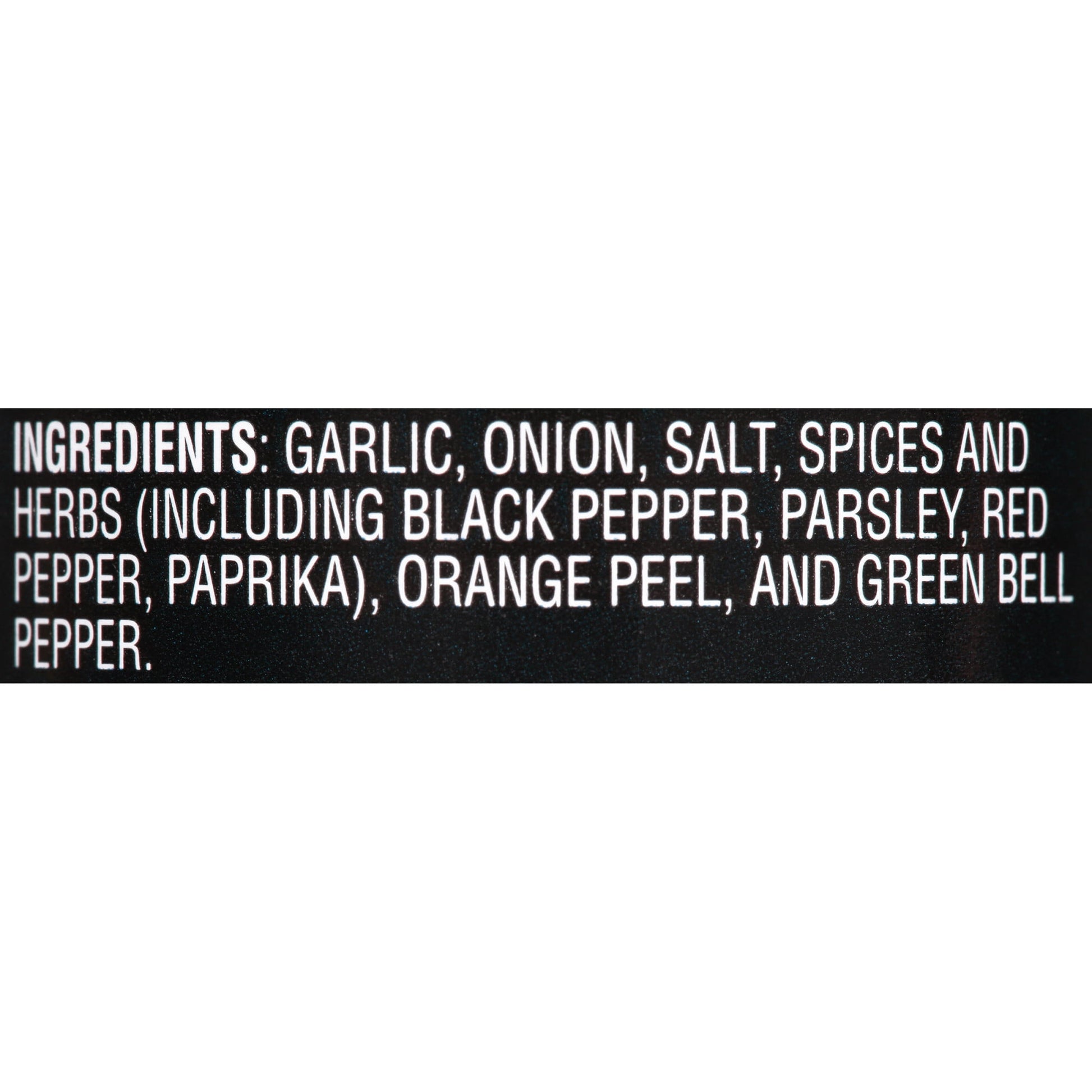 Bold blend of garlic, salt, onion, peppers, orange peel, paprika