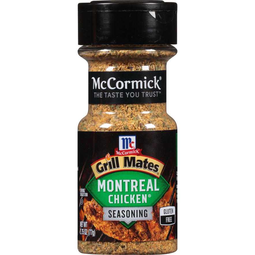 McCormick Grill Mates Montreal Chicken Seasoning is a robust blend of spices and herbs with no MSG added. You'll get an authentic grill taste with or without the grill, all it takes is a little garlic, salt, onion and orange peel. A must have in any griller’s kitchen our stand-out seasonings, rubs and blends take meat, seafood and veggies to a whole new level of flavor. McCormick Grill Mates is an essential ingredient, featuring a wide variety of on-trend seasonings to help you create perfectly flavored masterpieces that deliver bold, mouthwatering flavors. This McCormick® Grill Mates® Montreal Chicken Seasoning is in a Plastic bottle that is 2.75 ounces. Store this shelf-stable item at an ambient temperature.