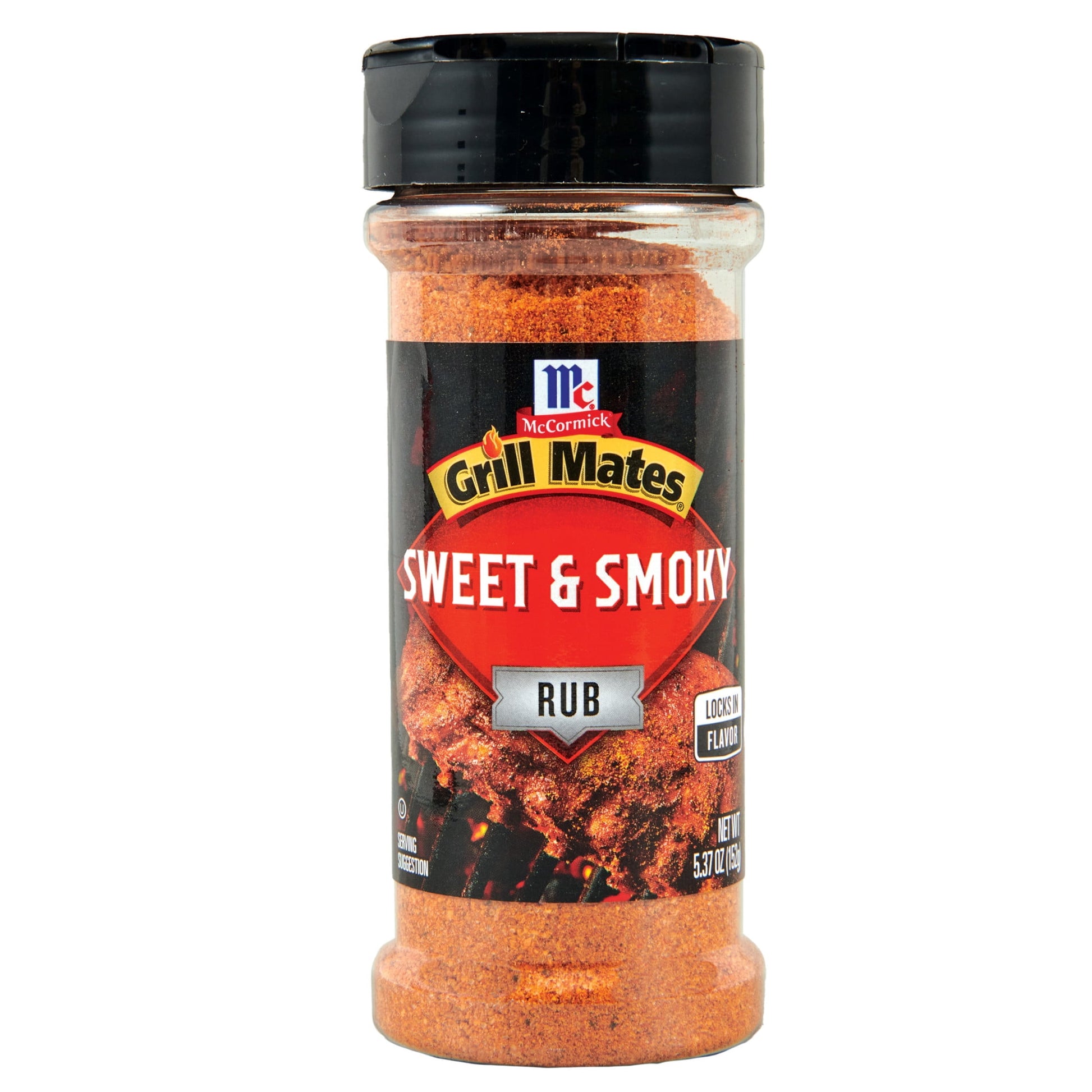America’s #1 grilling seasoning, infused with real McCormick ingredients like garlic, chipotle, paprika and cinnamon, our classic Grill Mates Sweet & Smoky Rub is exactly that -- sweet and smoky. A griller favorite, it helps you take pork, chicken, beef and seafood to big, bold flavor proportions. Sweet & Smoky Rub is at-the-ready for just about any meat you’re throwin’ on the flame. You can shake it out for quick-prep or let it marinate overnight. Coat your meats generously with rub before grilling for a mouthwatering result bound to impress. Either way, it helps create a mouthwatering crust on the outside and juicy meat on the inside. This McCormick® Grill Mates® Sweet & Smoky Rub is in a Plastic bottle that is 5.37 ounces. Store this shelf-stable item at an ambient temperature.
