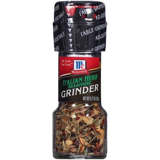 An Italian blend of rosemary, parsley and black pepper, with hearty pieces of garlic, onion and tomato, all with a built-in adjustable grinder. Perfect for adding zesty flavor to pasta sauces, meats, soups or salads. McCormick® Italian Herb Seasoning Grinder adds freshly ground Italian seasoning to dinnertime favorites. Adjust the grinder from coarse ground to finely ground then turn upside down and twist over any pasta dish, pizza, grilled chicken, seafood, sauteed veggies or tomato salad. Great also for the classic olive oil dip for Italian bread, and in marinades and salad dressings. You just might find yourself twisting this versatile blend of Italian herbs and spices, along with sea salt, chili pepper and tomato over all your meals. This McCormick® Italian Herb Seasoning Grinder is in a Glass bottle that is 0.77 ounces. Store this shelf-stable item at an ambient temperature.