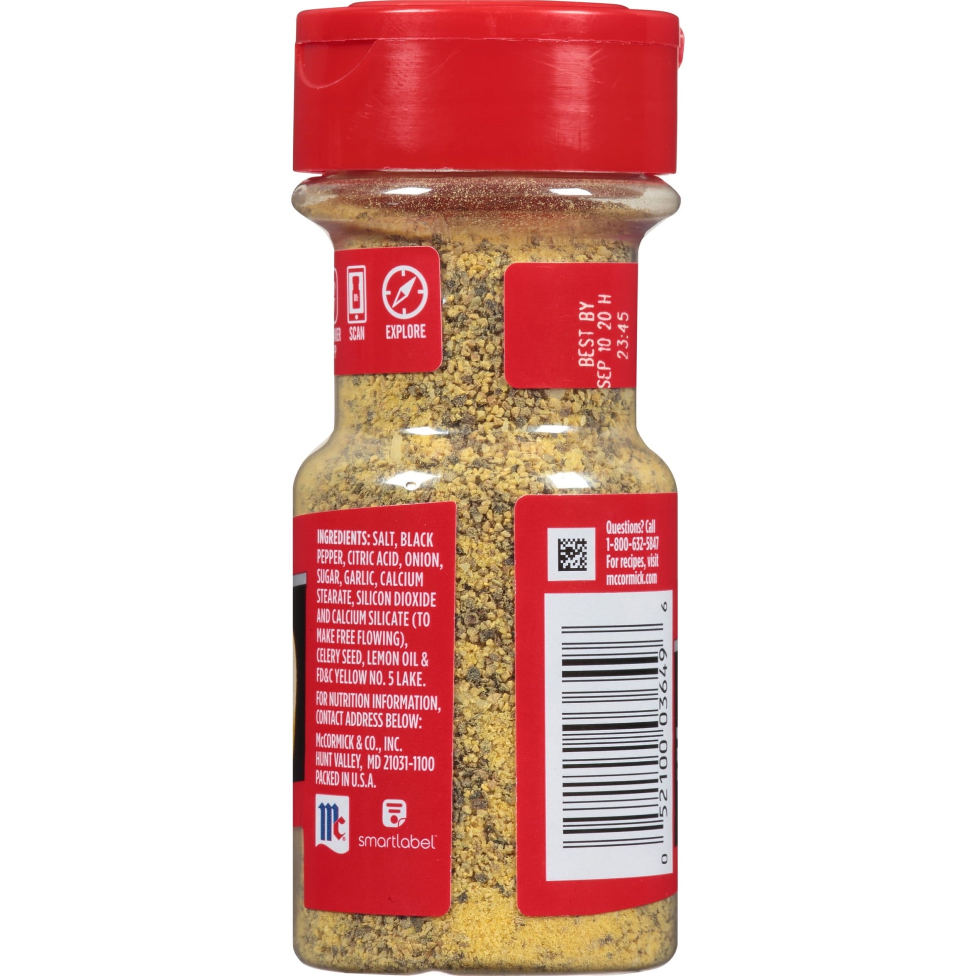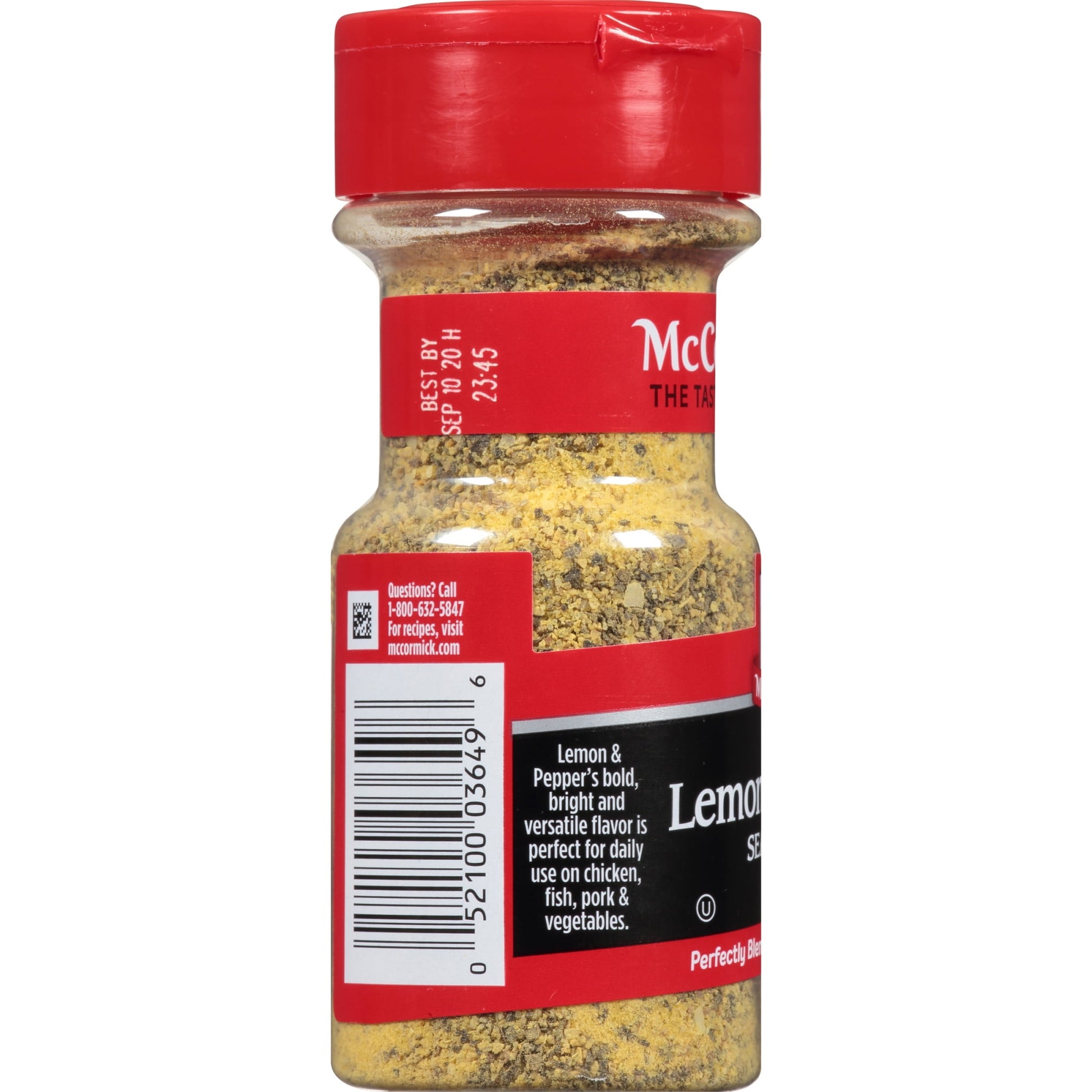 McCormick Lemon & Pepper Seasoning is a blend of premium black pepper, lemon, salt and a touch of onion and garlic. Its bold, bright and versatile flavor is perfect for daily use on chicken, fish, pork and vegetables. This classic combination of lemon and black pepper is especially delicious on fish, shrimp and other seafood. Add to melted butter or olive oil and brush over the seafood while grilling or broiling. It’s equally good on chicken, pork chops, pasta and vegetables. Use it adds zesty taste to eggs, tuna salad, coleslaw, salad dressing and marinades. This perfectly blended all-purpose seasoning is a kitchen staple that you can count on to deliver bright, bold flavor to most of your family’s meals. This McCormick® Lemon & Pepper Seasoning is in a Plastic bottle that is 3.5 ounces. Store this shelf-stable item at an ambient temperature.