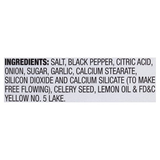 Zesty, sharp flavor of salt, black pepper, onion, garlic and lemon oil