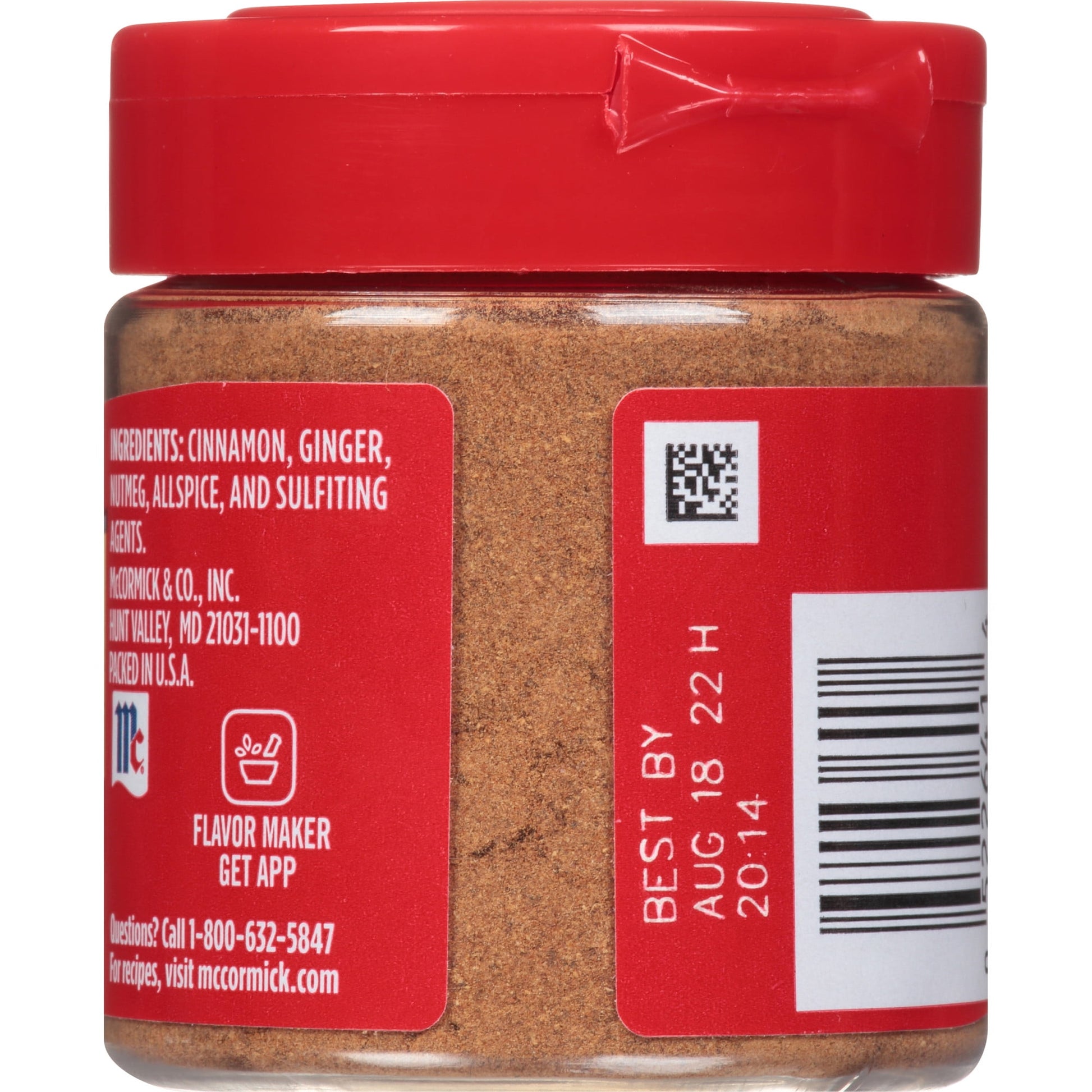 A McCormick original since 1934, there’s nothing quite like the warm taste of pumpkin pie spice! It brings the spicy-sweet flavor of cinnamon and ginger to holiday baking, desserts, drinks and savory dishes. It’s not autumn without McCormick Pumpkin Pie Spice! Featuring a warm, complex sweetness and delicate spices, this blend of cinnamon, ginger, nutmeg and allspice adds homemade flavor to holiday baking, like spice cakes, pumpkin muffins, gingerbread cookies, streusel toppings and of course, pumpkin pie. It also shines in beverages- add to lattes, smoothies and hot chocolate. Savory dishes benefit from a sprinkle of pumpkin pie spice. Try it on roasted sweet potatoes, yams, carrots or acorn squash. Spice up breakfast by adding a pinch to pancakes, pumpkin muffins and oatmeal. This McCormick® Pumpkin Pie Spice is in a Plastic bottle that is 1.12 ounces. Store this shelf-stable item at an ambient temperature.