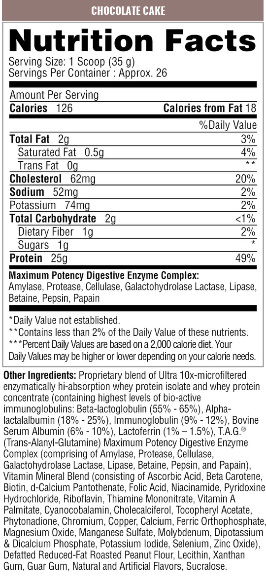 Using the highest quality proteins that have been ultra-micro-filtrated, Protizyme further enhances the absorption kinetics by spraying the protein particles with specific enzymes, making it easier to digest. To further enhance the nutrient profile, 24 essential vitamins and minerals have been added along with our powerful T.A.G.® (trans alanyl glutamine) to improve recovery and absorption. With less bloat, easy mixability and fast digestion, you can utilize Protizyme anytime of the day, as well as before and after your workouts.*