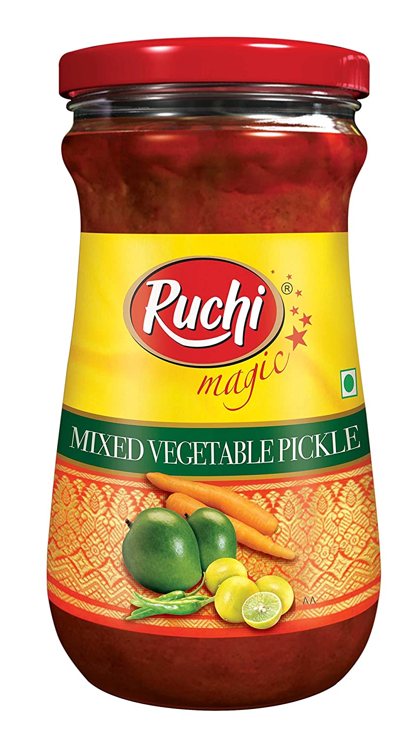 The tasty, diversified Ruchi Magic mixed vegetable pickle is made of neatly sliced handpicked farm-fresh vegetables that possess distinct qualities and delivers a completion to your meal. From rice to roti, brunch to snack, a spoon of ruchi mixed vegetable pickle acts as great enhancer to your dishes.