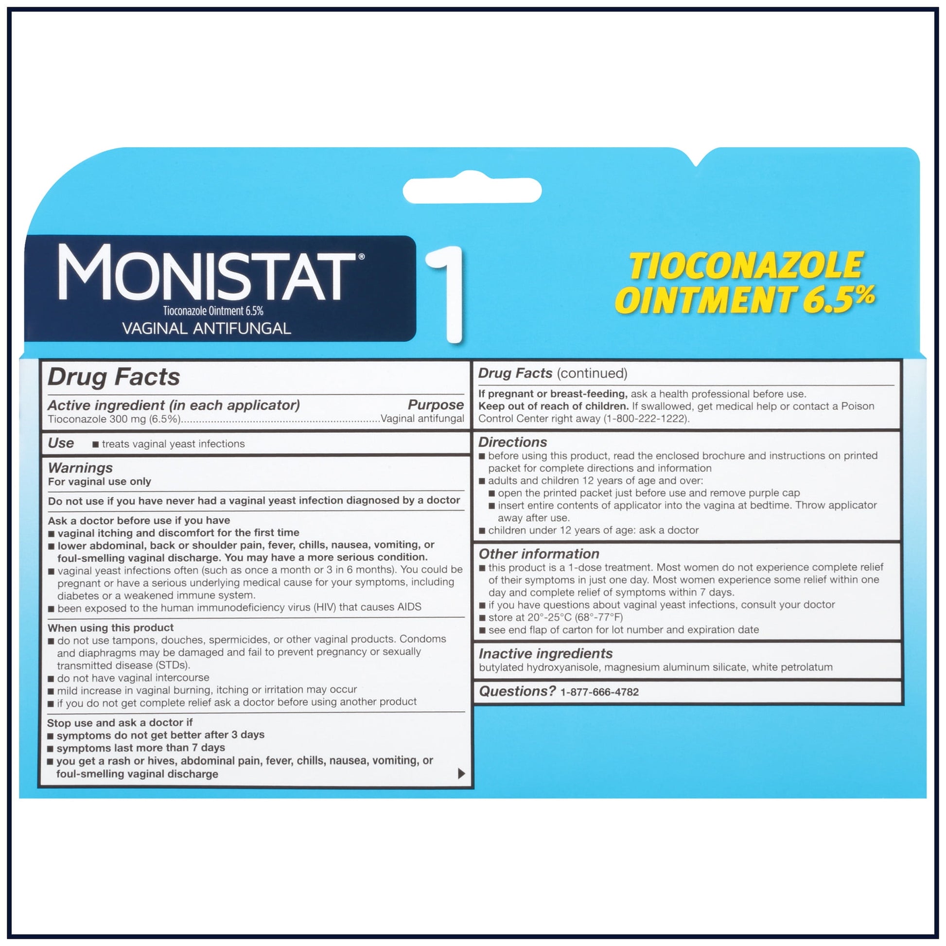 Monistat 1 Day Yeast Infection Treatment for Women, 1 Tioconazole Ointment Applicator