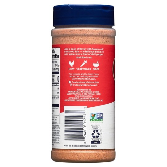Morton Season-All Seasoned Salt is a dynamic all-purpose seasoning, made with a flavorful blend of salt and savory spices. Morton Season-All Seasoned Salt is a balanced blend of salt, paprika, black pepper, onion, garlic, and a hint of chili pepper. Morton Season-All Seasoned Salt is seasoned with salt, not sugar. Sprinkle on beef, pork, or chicken before or after cooking for a flavorful kick. This seasoning is also great on rice, vegetables and potatoes for added dimension and flavor. This 16 ounce shaker of seasoning salt is the perfect complement to any spice set. Use as: steak seasoning, poultry seasoning, fajita seasoning, sausage seasoning, salmon seasoning, pork seasoning, or vegetable seasoning. At Morton Salt, we make sure only the best salt crystals and seasonings reach your plate, so every dish you create will be as flavorful as you intend.