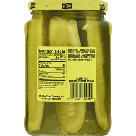 The Kosher Dill deliciousness you know and love from Mt. Olive in pickle spear form. These are the pickle spears you crave, and the classic Kosher Dill flavor you’ve been looking for. It’s not the perfect meal without the perfect pickle. Mt. Olive Kosher Dill Spears are the best pairing for all sandwiches, burgers, hot dogs and much more. They’re also the best way to satisfying your salty, crunchy cravings as a snack on their own! Mt. Olive Pickle Co. has been producing your favorite pickles for nearly 100 years, and Mt. Olive is proud to be the #1 best-selling brand of pickles, peppers and relishes in the United States. Our crunchy, flavorful pickle goodness comes from the corner of Cucumber & Vine in our hometown in North Carolina.
