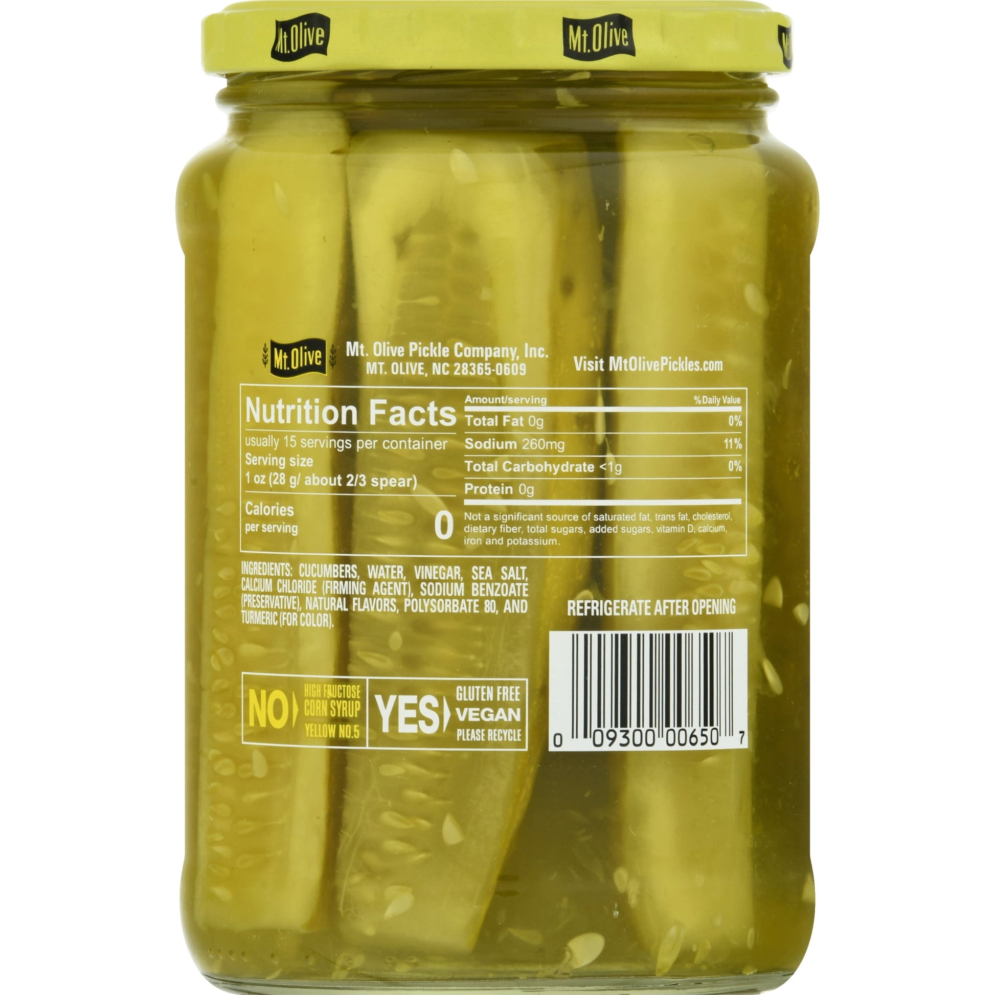 The 24 fl oz jar of Kosher Dill deliciousness you know and love from Mt. Olive in pickle spear form made with Sea Salt. These are the pickle spears you crave, and the classic Kosher Dill flavor you’ve been looking for. It’s not the perfect meal without the perfect pickle. Mt. Olive Kosher Dill Spears made with Sea Salt are the best pairing for all sandwiches, burgers, hot dogs and much more. They’re also the best way to satisfying your salty, crunchy cravings as a snack on their own! Mt. Olive Pickle Co. has been producing your favorite pickles for nearly 100 years, and Mt. Olive is proud to be the #1 best-selling brand of pickles, peppers and relishes in the United States. Our crunchy, flavorful pickle goodness comes from the corner of Cucumber & Vine in our hometown in North Carolina.