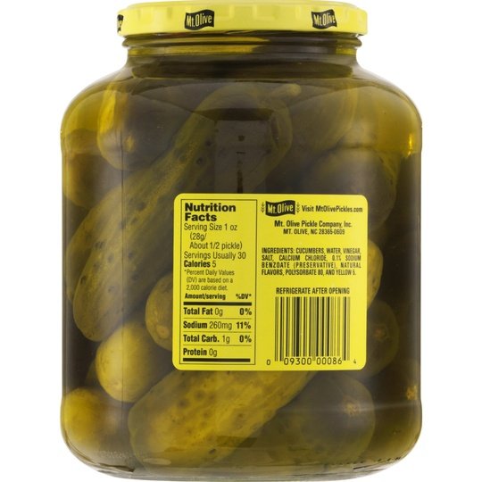 These whole and hearty Mt. Olive Kosher Dill Pickles are packed at the peak of freshness to ensure the best crunch. Mt. Olive’s fresh, flavorful whole Kosher Dill pickles are bursting with big garlic taste. Whole pickle goodness with a crispy bite, Mt. Olive Kosher Dills are one of life’s simple pleasures that you can always have at hand. Grab a jar and give your taste buds a treat! Just 5 calories per serving. only 1g net carbs, and 0g added sugar per serving. Mt. Olive Pickle Co. has been producing your favorite pickles for nearly 100 years, and Mt. Olive is proud to be the #1 best-selling brand of pickles, peppers and relishes in the United States. Our crunchy, flavorful pickle goodness comes from the corner of Cucumber & Vine in our hometown in North Carolina.