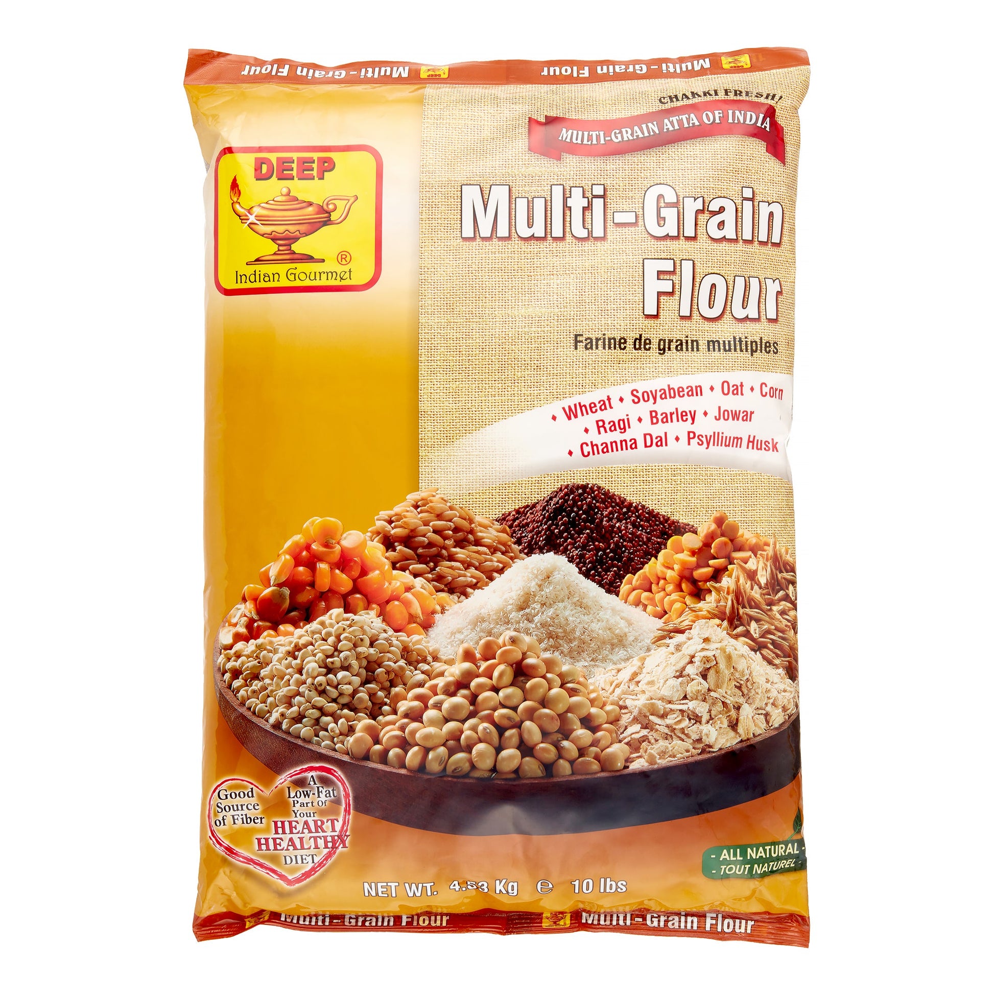 Looking to switch to a healthier flour option? Look no further. Deep Atta with Multigrains provides you and your family with wholesome goodness and healthy benefits without compromising on the taste. Made with the choicest of grains sourced from the fields across the country, this multigrain atta is made with extreme love and care in India. Deep Atta with Multigrains is made with 6 natural grains – wheat, maize, oats, soya, chana and psyllium husk. This unique combination of grains ensures that the flour is high in fibre which aids in digestion of food and keeps the gut healthy. This powerhouse multigrain atta also has many essentials which are required by the human body to stay fit, active and healthy. It is high in protein which helps in maintenance of the muscle mass. It is low in saturated fat which helps in maintaining cholesterol levels. The atta is also a source of Vitamin B1 (Thiamine) which aids in the normal function of nerves and heart, while the presence of iron in the atta supports immunity. The health benefits are not the only reason to switch to this multigrain flour. Deep understands the importance of taste and hence makes no compromise on that front as well. Behind every Deep pack are the Deep experts who’ve made the atta with extra care. The careful selection of grains and its proportions in the flour help absorb more water which results in the rotis being smooth, soft and tasty! Rich in flavour and wholesome nutrition, Deep Atta with Multigrains ensures that you and your family stay fit, active and healthy, every day.