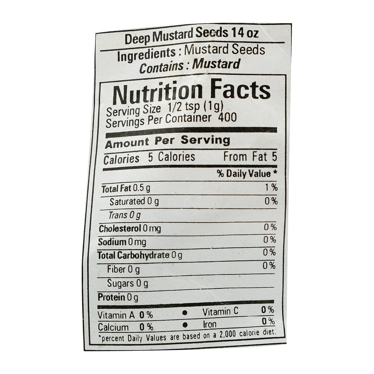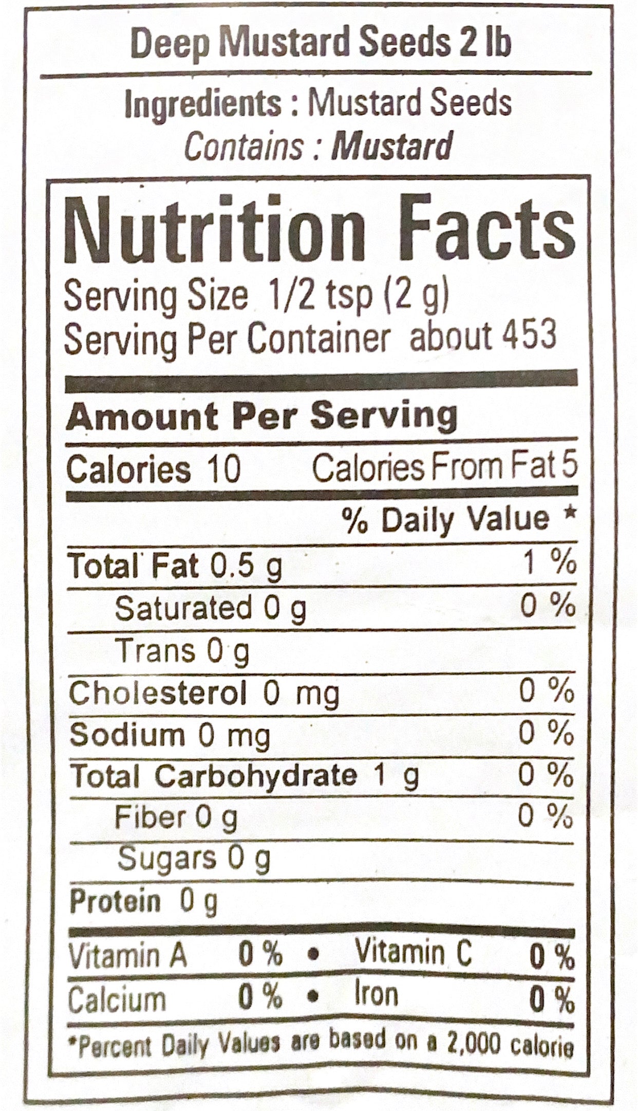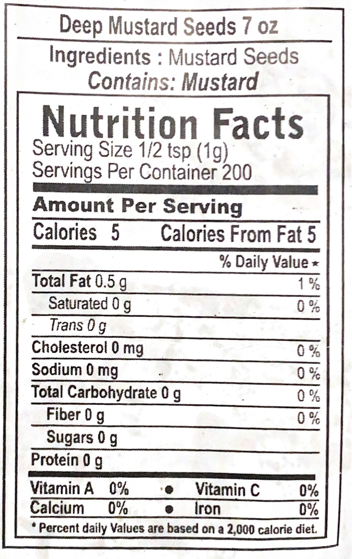 Mustard seeds of the various mustard plants are among the smallest of seeds. The seeds are about 3mm in diameter, and may be colored from yellowish white to black. They are important spices in many regional cuisines. The seeds can come from three different plants: black mustard (Brassica nigra), brown Indian mustard (B. juncea), and white mustard. Indians have used mustard seeds in their food for over two thousand years. Mustard seeds are also known as "Sarson" and is very popular in North India. In North sarson ka Saag is very popular. "Sarson ka tel" Mustard oil is very good for body massage during extreme winters, as it keeps the body warm and moist.