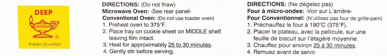 Vegetarian. All natural. This North Indian favorite can be enjoyed with tandoori naan or parathas! For an authentic experience, serve with sliced onions & fresh lemon. Product of the USA.