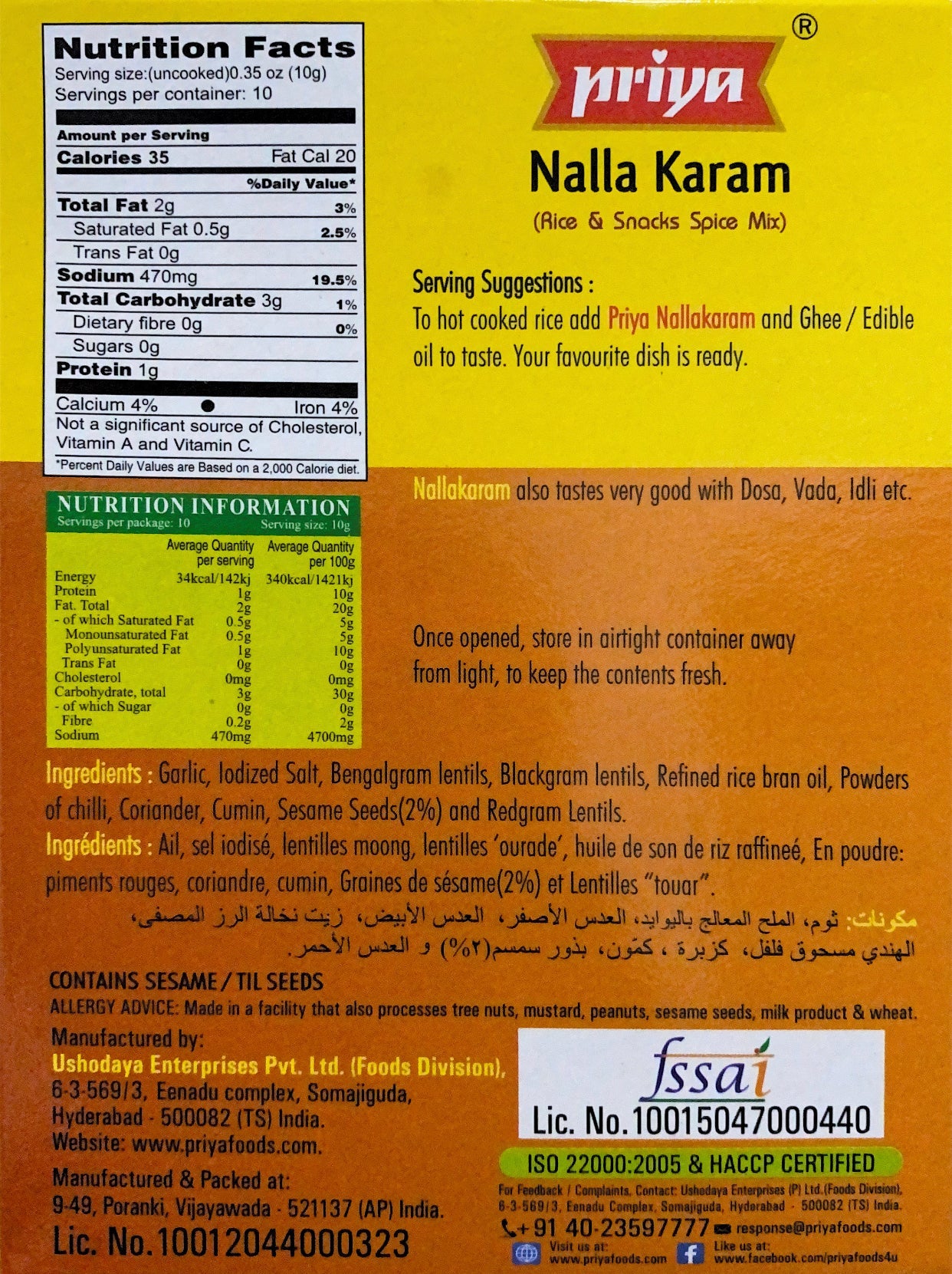 Priya Nalla Karam | Rice and Snacks Spice Mix