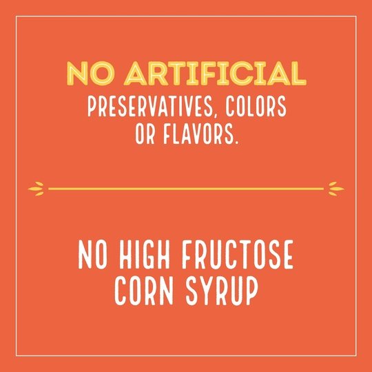 No artificial preservatives, colors or flavors, and no high fructose corn syrup