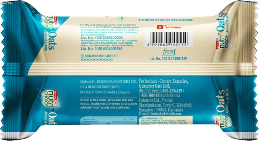 The Britannia NutriChoice Oats Milk Almond Cookies are a delicious healthy snack which is a combination of rolled oats, wheat bran, crunchy almonds and goodness of milk. These high fibre Oats and almond biscuits are perfect for whenever you want to snack on healthy biscuits. They are also yummy Milk cookies when you want to snack on something tasty. Go ahead and make a good choice.
