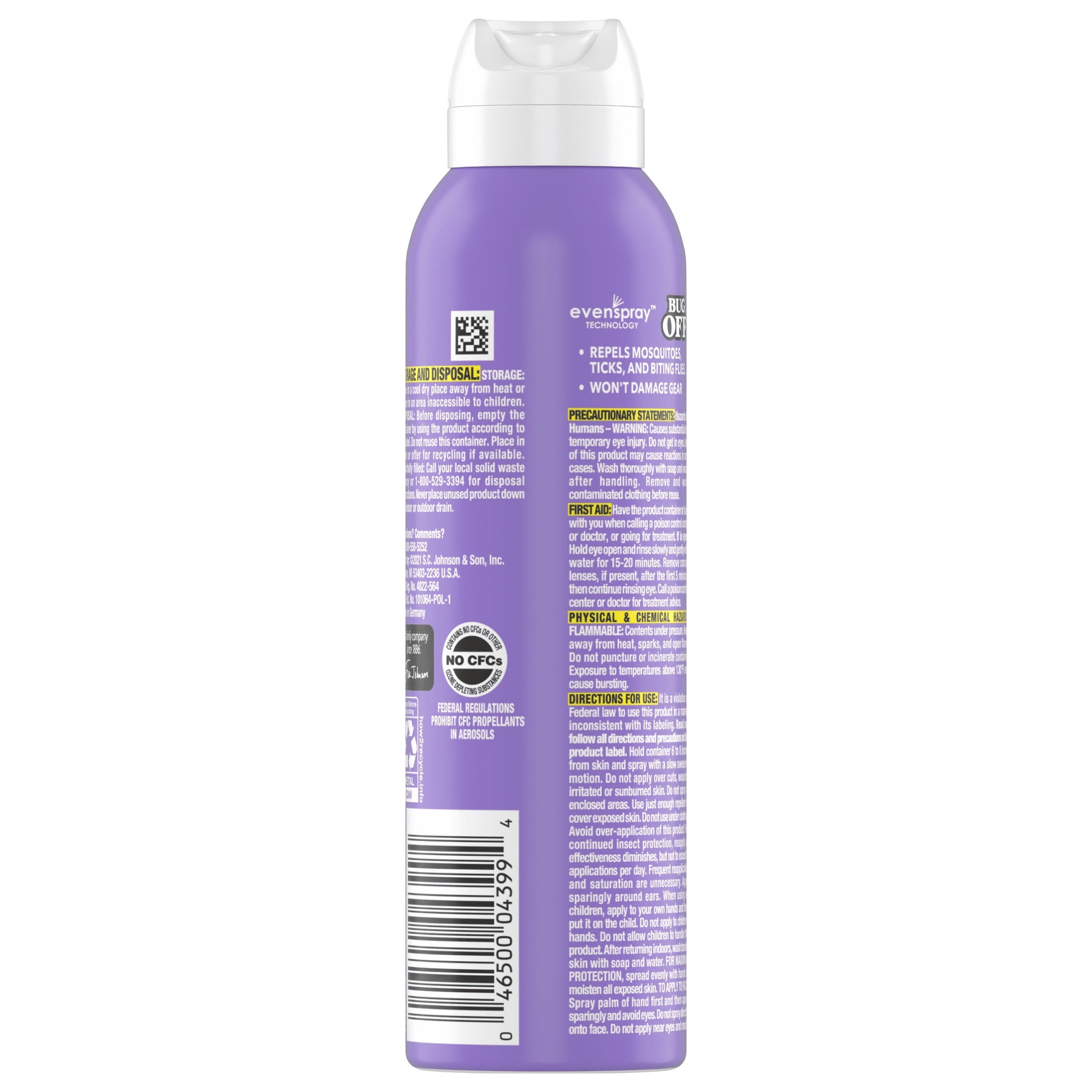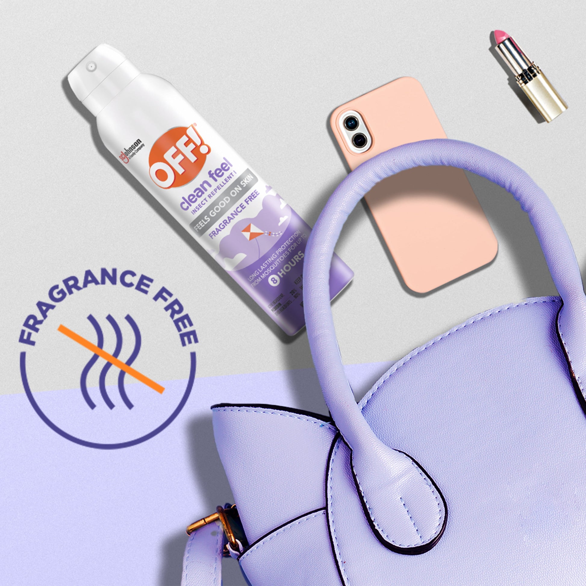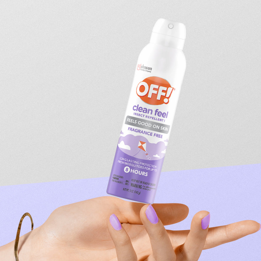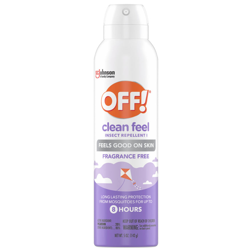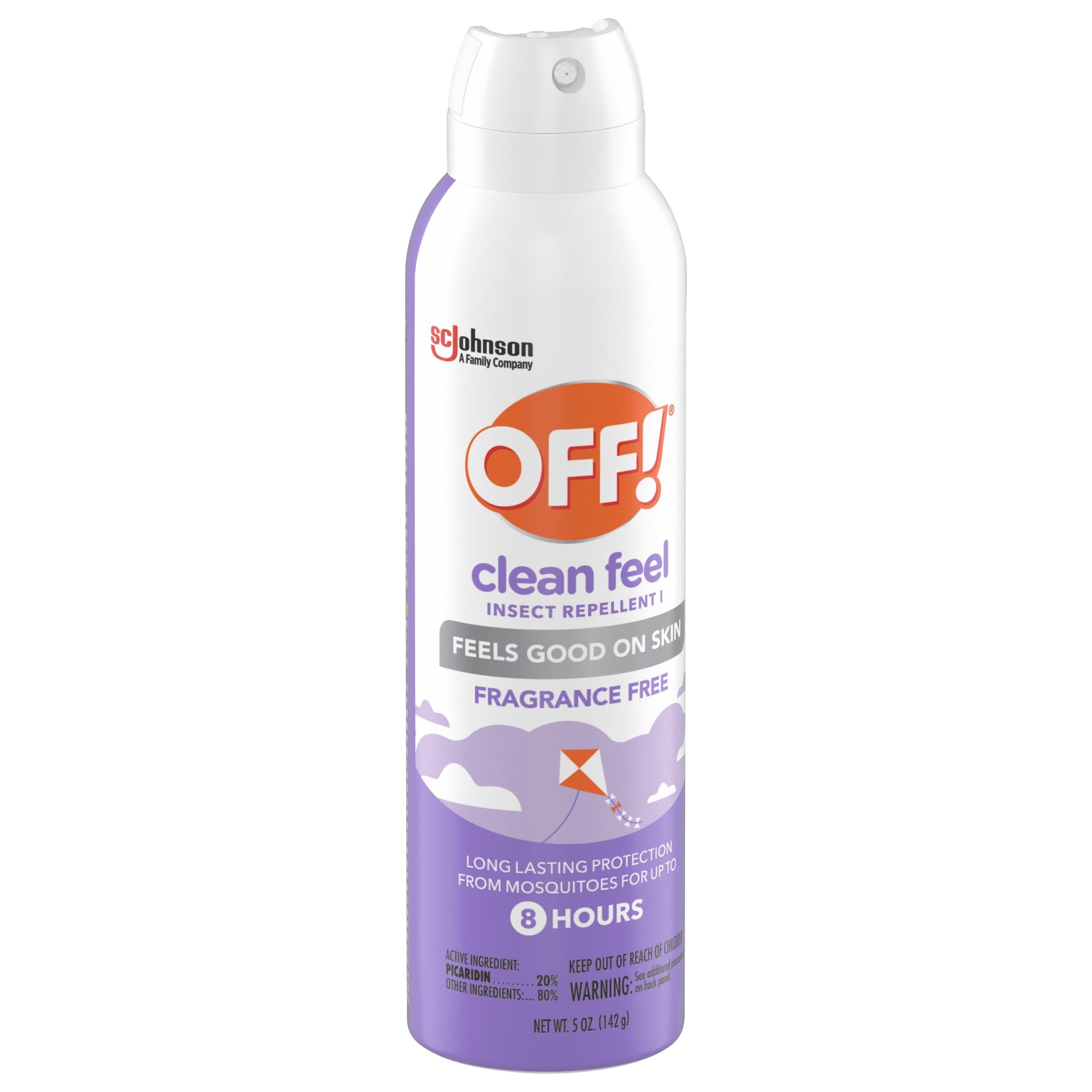 OFF!® Clean Feel Aerosol is an insect repellent spray perfect for everyday moments. The lightweight repellent feels good on skin and the scent-free bug spray is not sticky or greasy.This outdoor bug repellent spray protects you and your family from mosquitoes, ticks, and biting flies. Formulated with 20% picaridin, a highly effective active ingredient. OFF!® Clean Feel gives you proven protection* that lasts for up to 8 hours and won't damage clothing. The easy-to-apply aerosol spray makes it simple to spray, spread and go.Hard to believe it is real. Harder to feel on your skin. Unbelievably real.*Every OFF!® brand insect repellent is evaluated to prove it repels mosquitoes when used as directed.