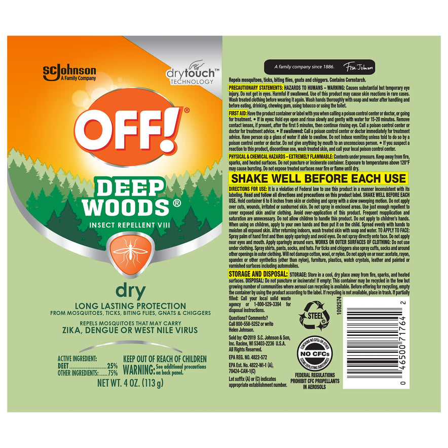 When enjoying the great outdoors, no one wants to wear a greasy mosquito spray. This delivers the proven non-oily, non-greasy protection of OFF! Deep Woods. You won't know you're wearing it, but the mosquitoes will. Ideal for fishing, hiking, and hunting. Product label may vary.