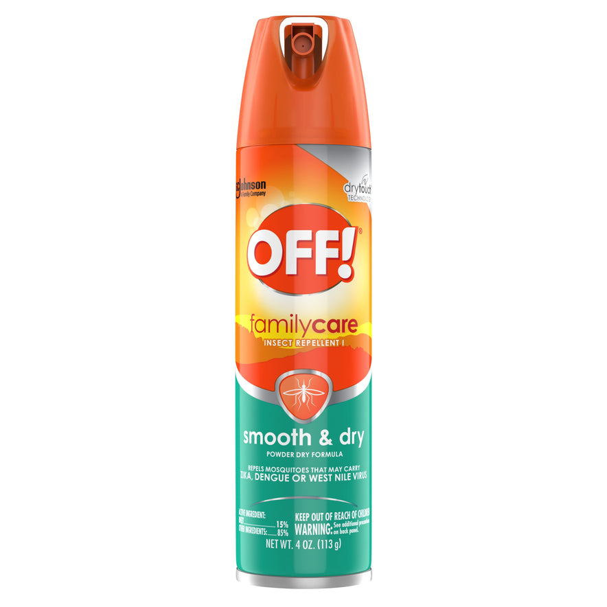 OFF! Smooth & Dry insect Repellent I uses a powder-dry repellent formula that leaves your skin feeling smooth, not oily or greasy. Live life your way, and repel mosquitoes that may carry Zika, Dengue or West Nile viruses.Our long-lasting formula works on the outer surfaces of clothing and provides up to 6 hours of dry bug spray protection against mosquitoes. This insect spray is formulated with 15% DEET & is ideal for backyard, beach, gardening, picnicking, playing and relaxing. Keep out of reach of children and pets. See label for other precautions & usage directions.
