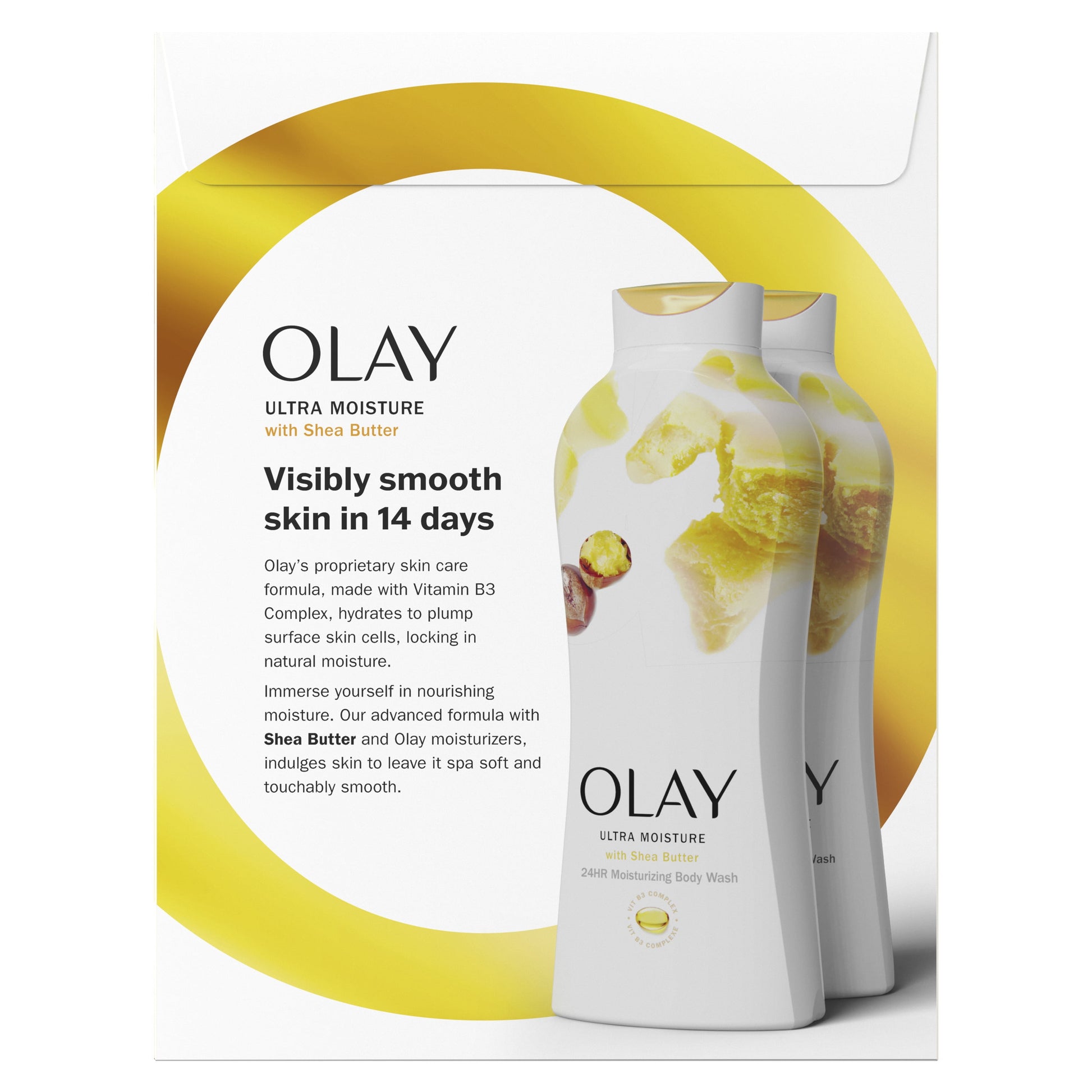 BEAUTIFUL, HEALTHY SKIN YOU CAN SEE AND FEEL - Reveal beautiful, healthy-looking skin with Olay Ultra Moisture Body Wash with Shea Butter. Now formulated with Olay's Vitamin B3 Complex, it hydrates to plump surface skin cells, locking in natural moisture. Our advanced formula, with Shea Butter and Olay moisturizers, indulges skin to leave it spa-soft and touchable smooth. All Female Skin Types