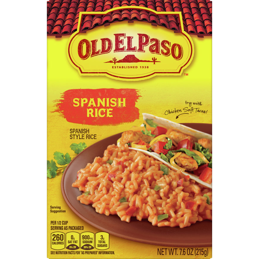 Old El Paso Spanish Rice is a favorite savory side for any south-of-the-border order! With easy cooking directions, this delicious stovetop or microwave rice is ready in minutes and pairs well with beef, chicken, and more. Enjoy the 7.6 ounces of Spanish-style spices and bold flavors and use it as a topping or a side dish. Spice up your go-to meal or find a new staple with Old El Paso Spanish Rice.For more than 80 years, Old El Paso has been bringing families and communities together to celebrate old and new traditions around delicious, Mexican-inspired flavors. We believe that any night can be a taco night, and we’re here to help make it a little easier and a lot more delicious. Our variety of crispy hard taco shells, tasty soft tortillas, flavorful seasonings, and much more help make taco night fun.
