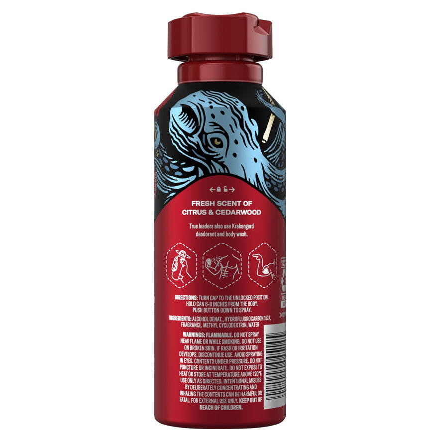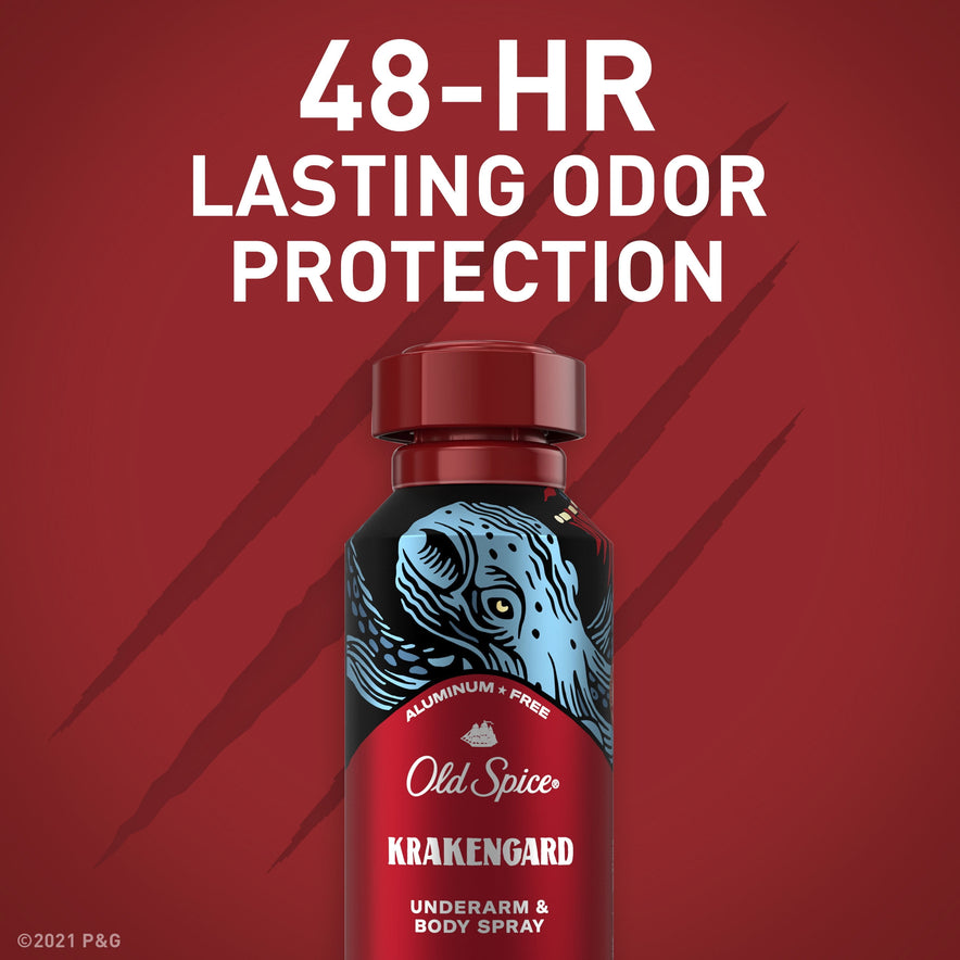 Old Spice Aluminum Free Krakengard Body Spray, 5.1 fl oz has 24/7 LASTING COLOGNE QUALITY SCENT* with daily use