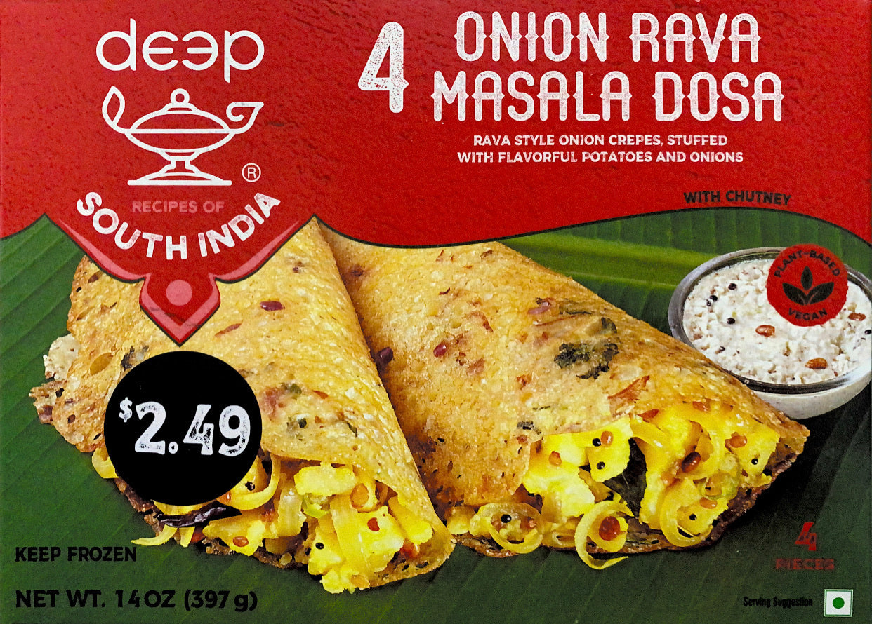 Rava style onion crepes, stuffed with flavorful potatoes and onions.