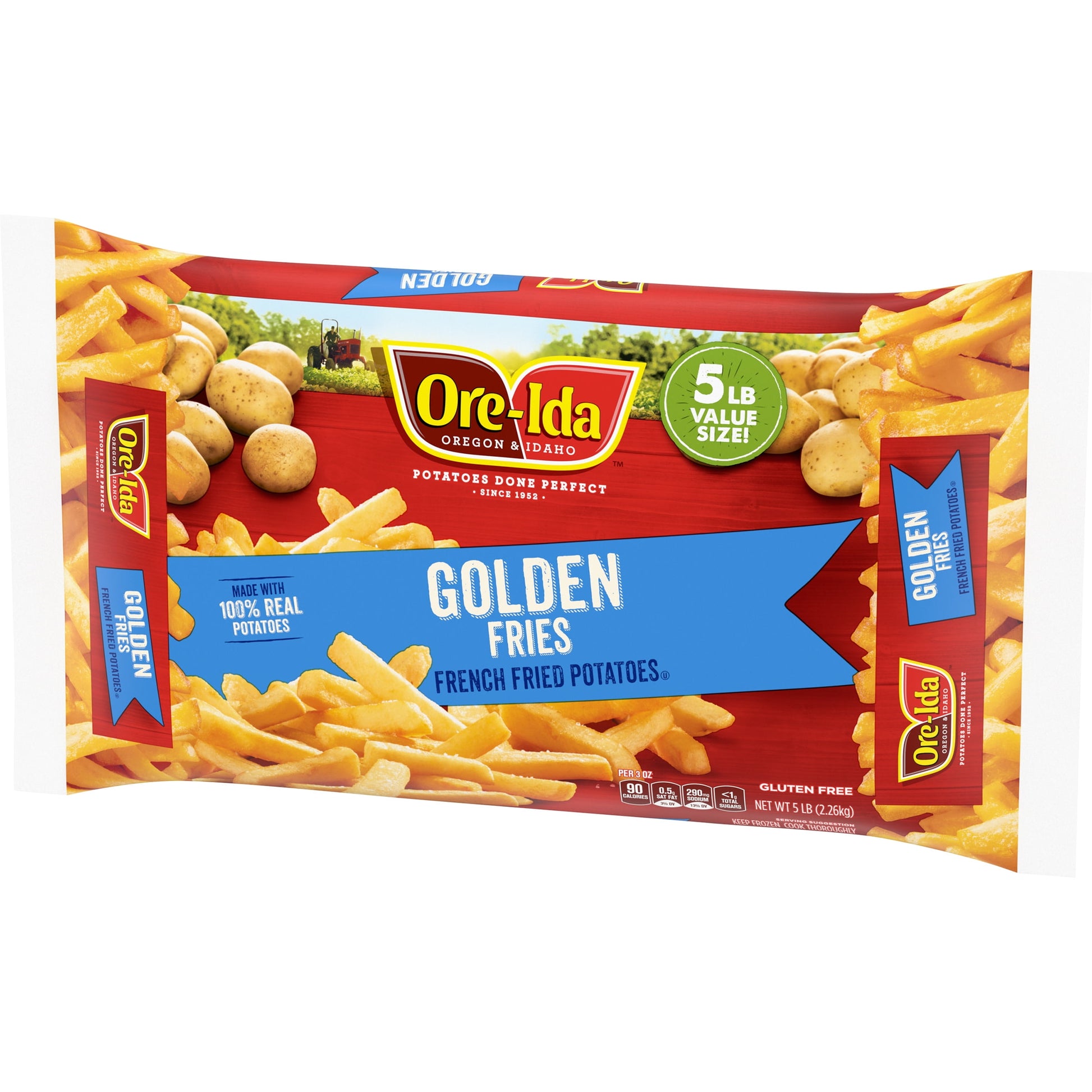 Ore-Ida Golden French Fries makes it easy to enjoy delicious fries at home. Crispy and golden, these Grade A fries are made from freshly peeled, American grown potatoes. These gluten free fries offer a crispy outside with a fluffy inside for the perfect blend of textures to make your next family meal a success. Toss these frozen French fries on a baking sheet to bake them in the oven according to package instructions for perfect golden fries. An American classic, these easy fries are perfect for dipping. Serve up the traditional burger and fries, or get creative with loaded fries topped with cheese and bacon. These oven baked fries come sealed in a 5 pound bag help lock in flavor. Your family deserves the highest quality because if it's not Grade A, it's not Ore-Ida!