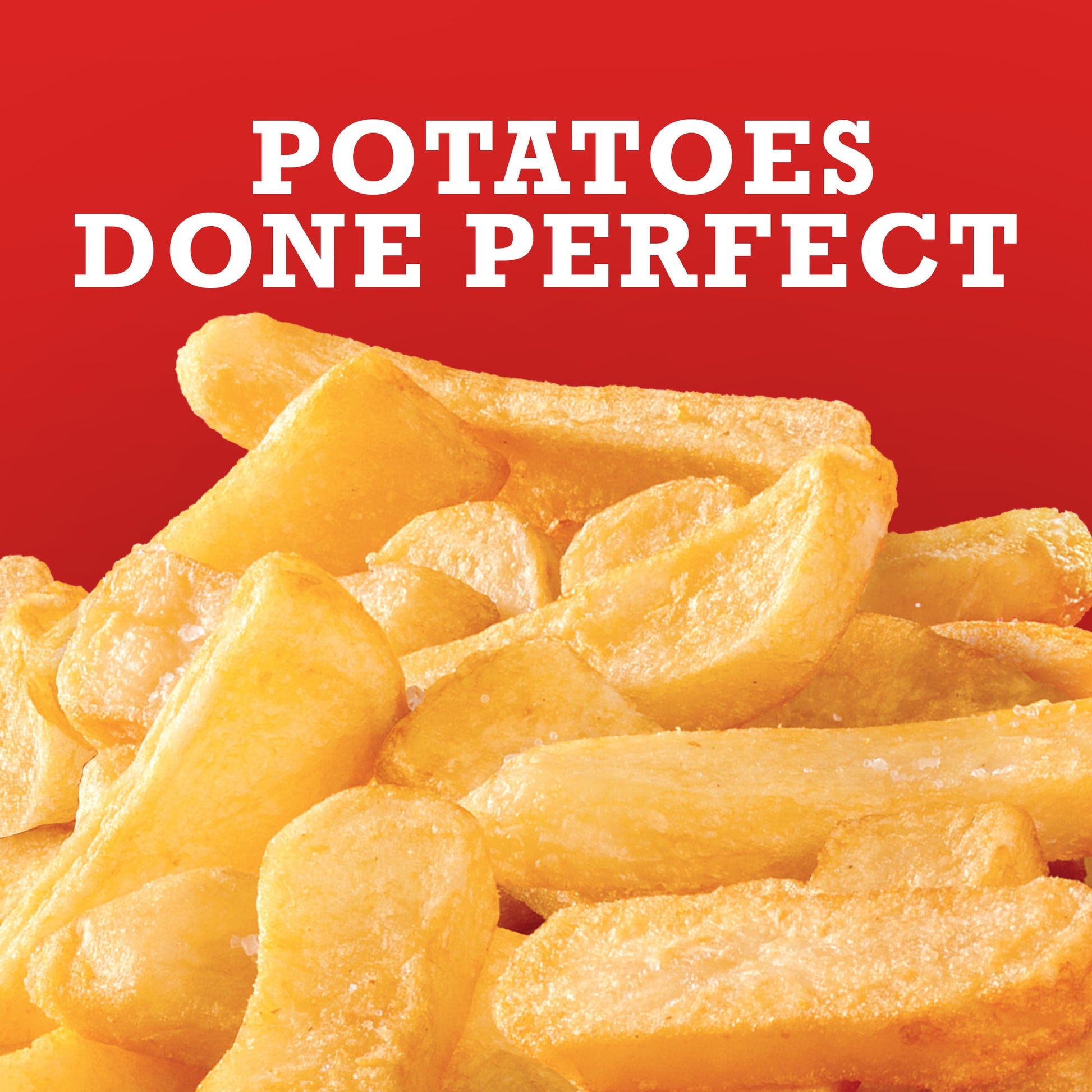 Ore-Ida Golden Steak Fries make it easy to enjoy delicious fries at home. Crispy and golden, these Grade A fries are made from freshly peeled, American grown potatoes cut into thick fries. These gluten free fries offer a crispy outside with a fluffy inside for the perfect blend of textures to make your next family meal a success. Toss these frozen fries on a baking sheet to bake them in the oven according to package instructions for perfect golden fries. An American classic, these easy fries are perfect for dipping. Serve up the traditional burger and fries, or get creative with loaded steak fries topped with cheese and bacon. These oven baked fries come sealed in a 28 ounce bag to help lock in flavor. Your family deserves the highest quality because if it's not Grade A, it's not Ore-Ida!