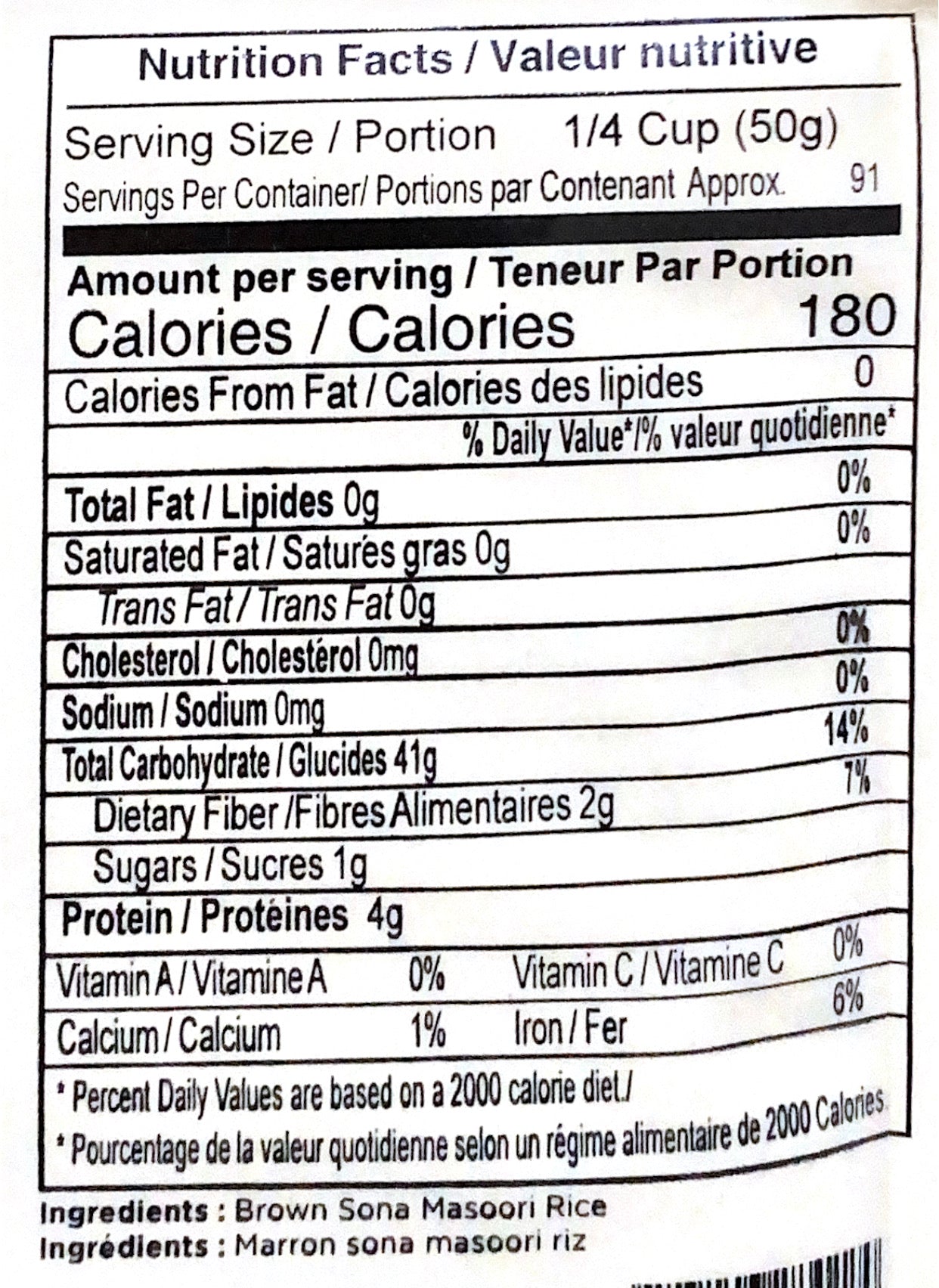 Unpolished or brown rice is different from white rice in that the second layer, which is a reddish-brown thin skin hugging the rice seed, is left on. Brown rice has many benefits, it's high in fiber and reduces the body's sugar and cholesterol levels To get the best out of your sonamasuri raw rice brown organic soak it in water for 20-30 minutes before cooking it While cooking use two parts water to one part rice and add a dash of salt and a dash of oil USDA Certified Organic Processed in a factory that processes peanuts, tree nuts and wheat (gluten). No preservatives, artificial colors or artificial flavors.