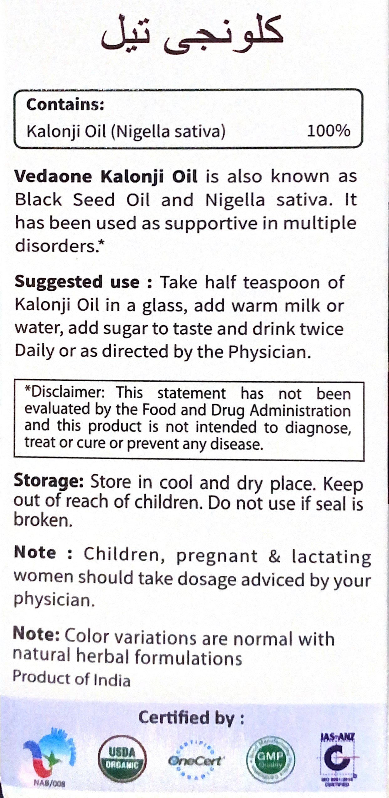 Vedaone Organic Kalonji Oil 200ml