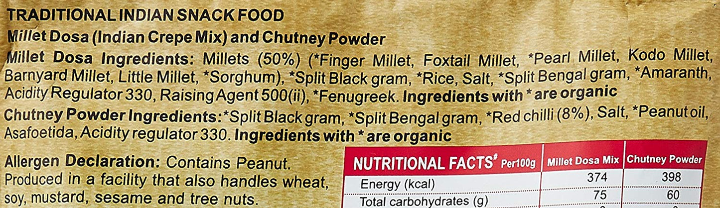 Millet Dosa With Chutney Powder is very useful & handy for us. We use this powder for making instant dosa & porrdige for our breakfast and dinner. It comes out very well with awesome flavours of millets. Made with organic ingredients, 10 to 12 dosas per p