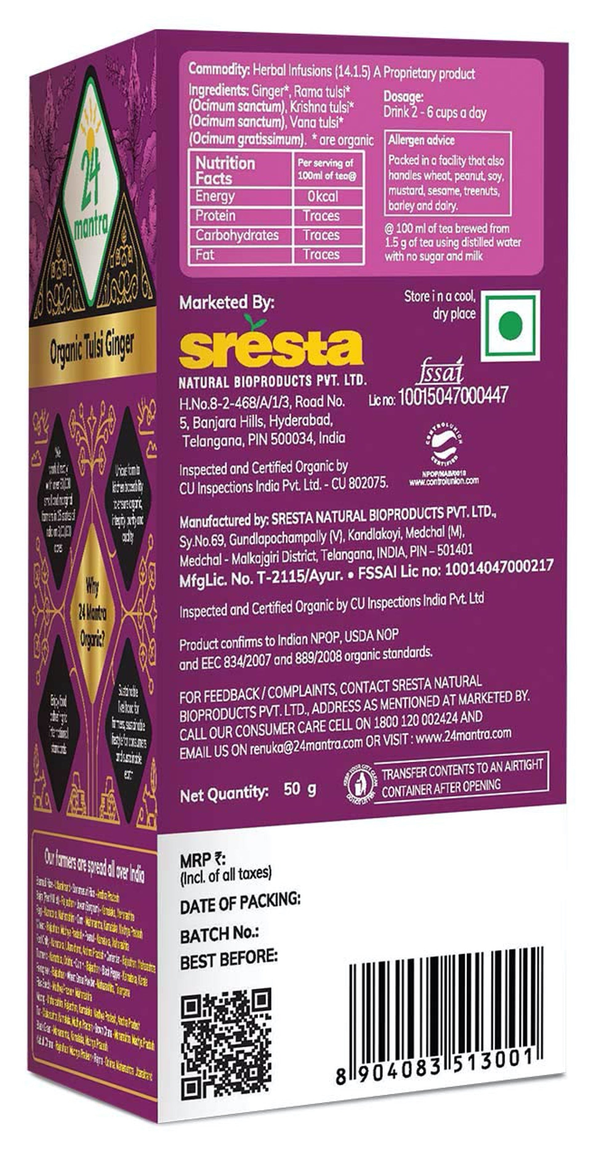 24 Mantra Organic Tulsi Ginger Tea | Soothes the senses