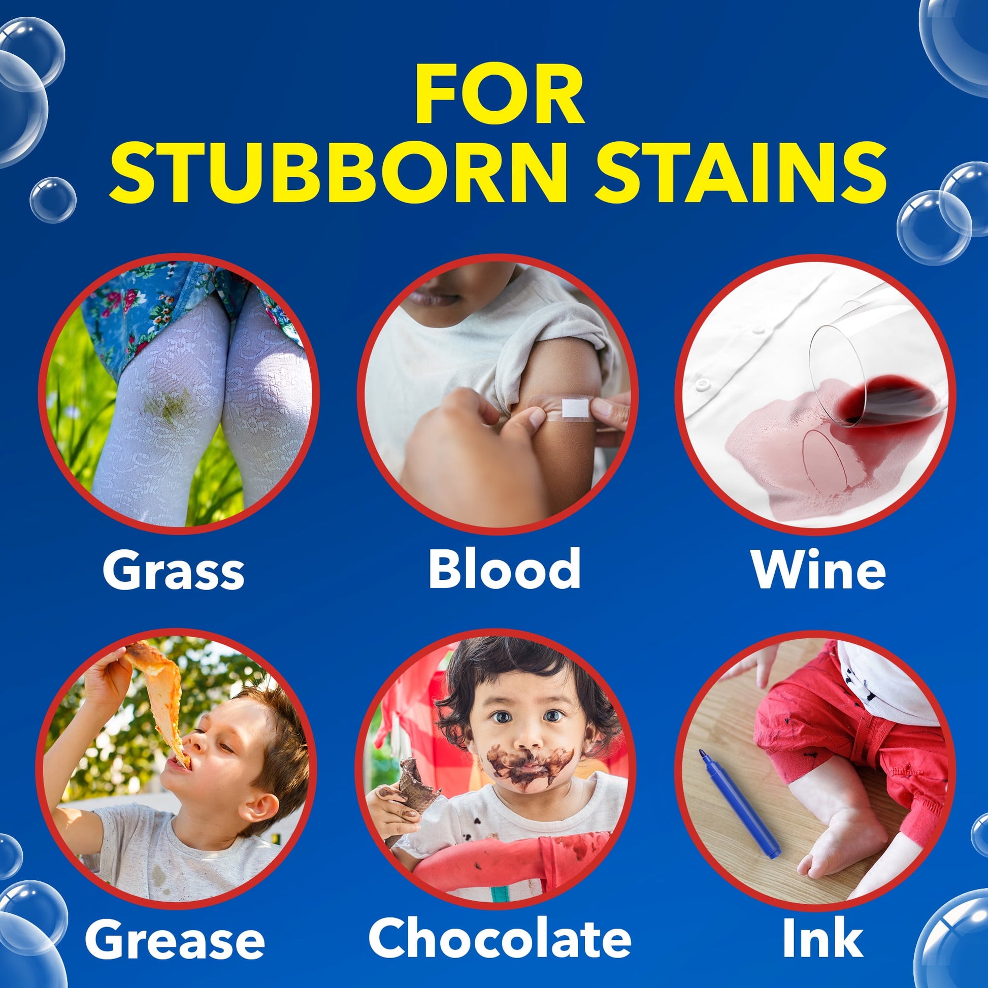 Powerful laundry spot remover for oil, grease, makeup, blood, grass, soil, clay, ink, food, drinks, and kid and baby stains