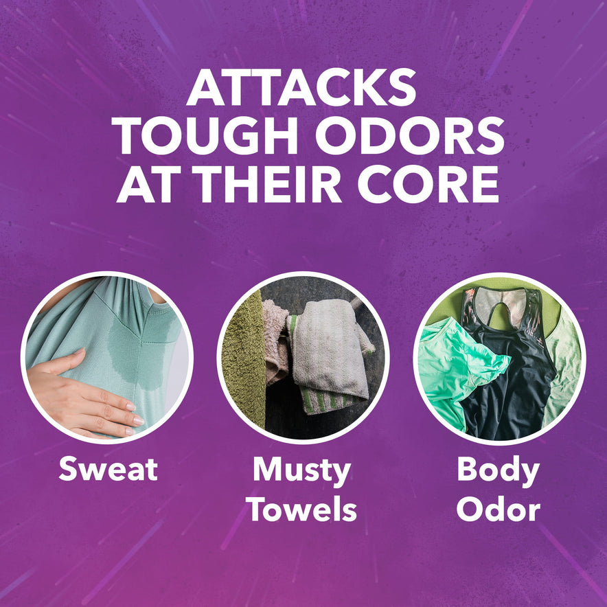 Oxygen-based, water-activated laundry booster gets out tough dirt, persistent spots and set-in stains, plus eliminates sweat and body odors