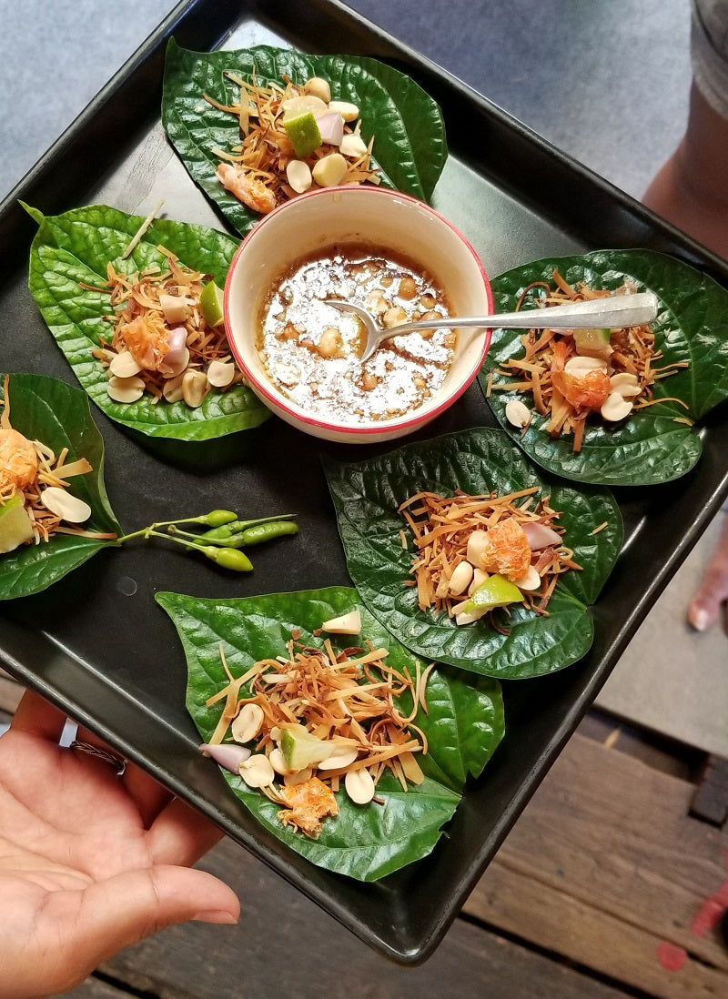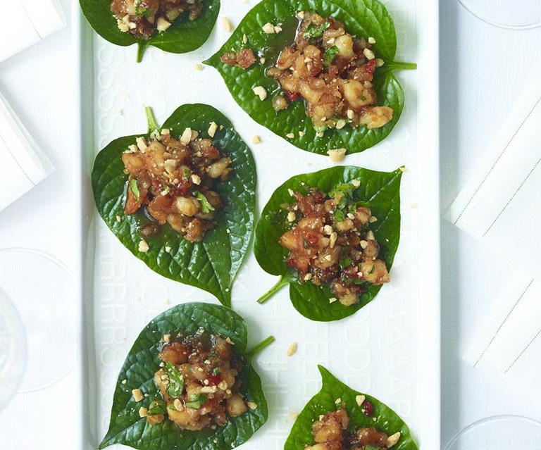 Paan is a preparation combining betel leaf with areca nut widely consumed throughout Southeast Asia, South Asia and East Asia. It is chewed for its stimulant effects. After chewing, it is either spat out or swallowed. Paan has many variations. Slaked lime paste is commonly added to bind the leaves.